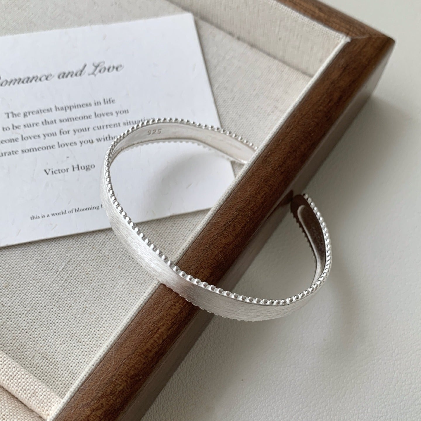 925 Sterlingsølv Bølget Åbent Armbånd – Mat, Børstet og Elegant