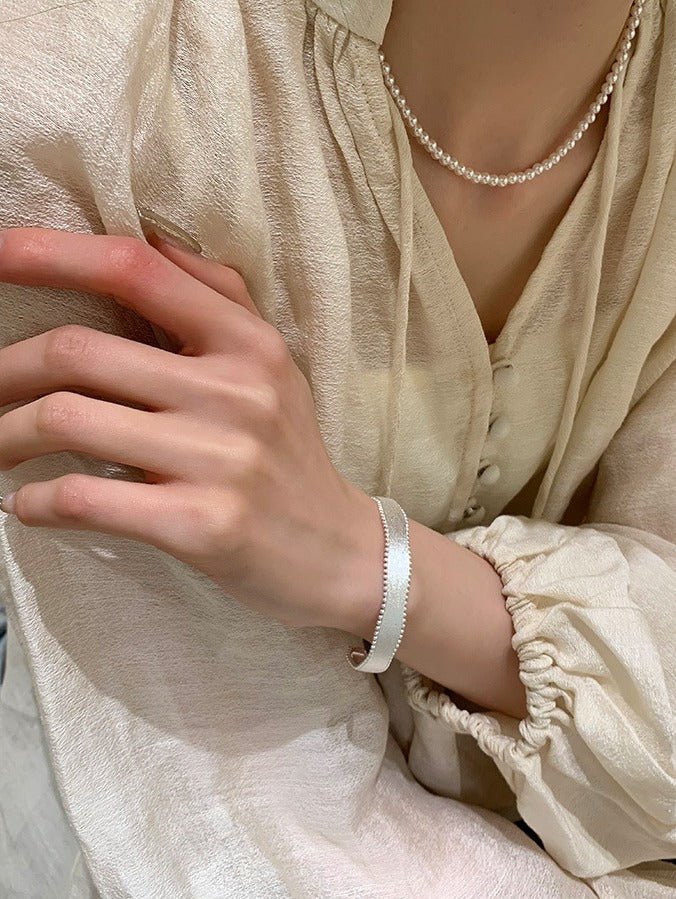 Kontrasten mellem de glatte og strukturerede flader giver armbåndet dybde og karakter.
