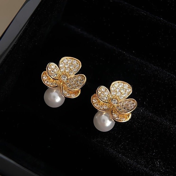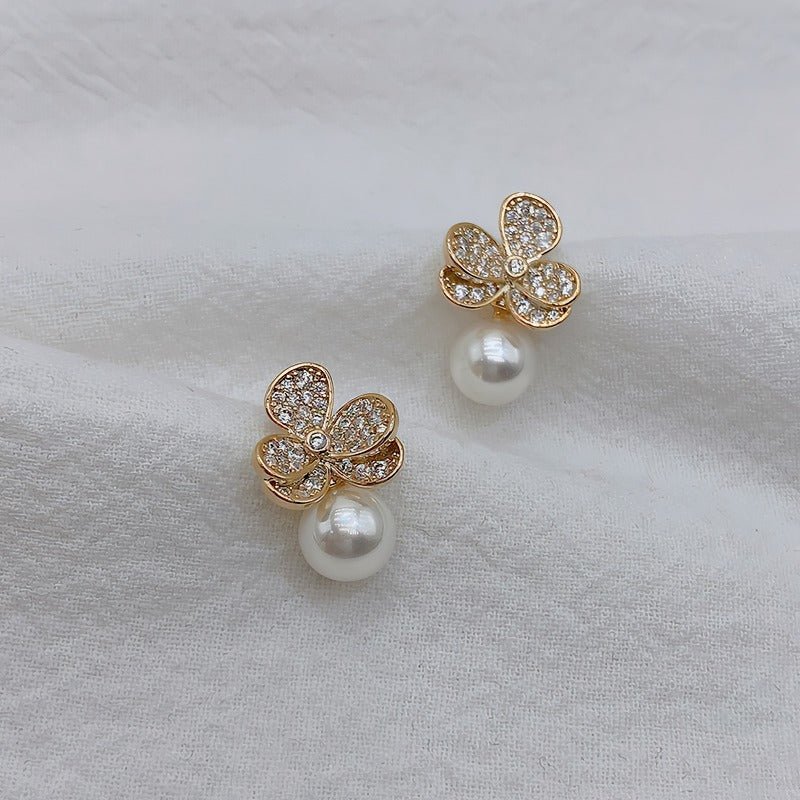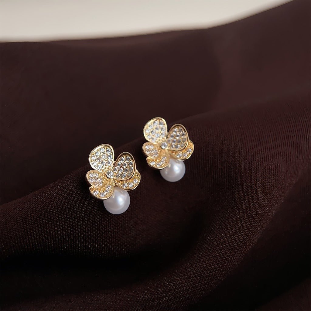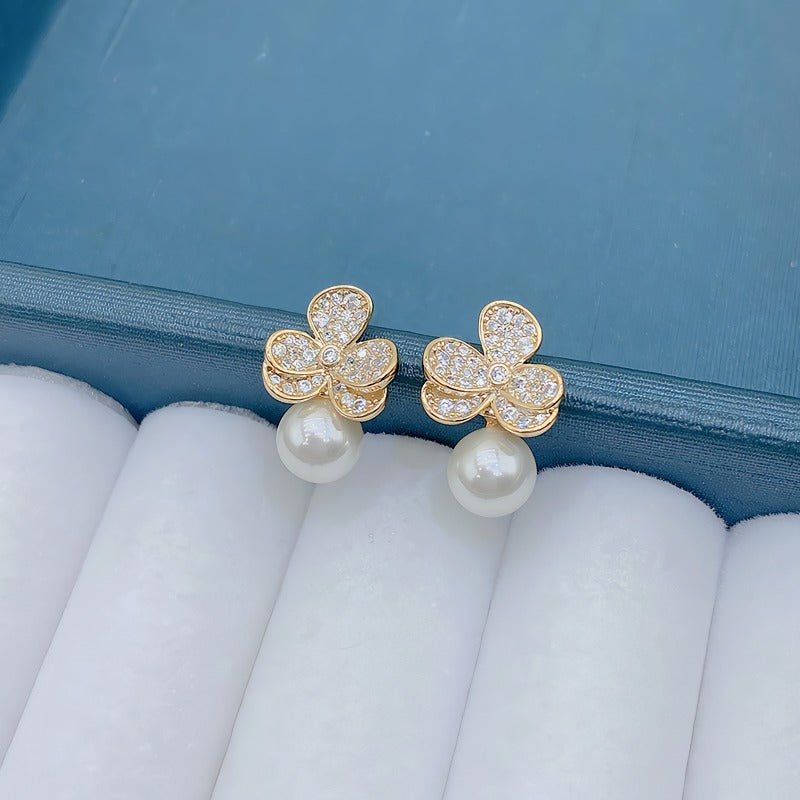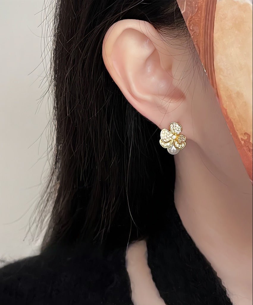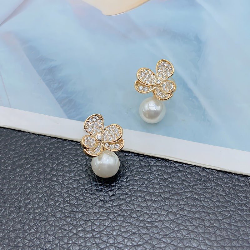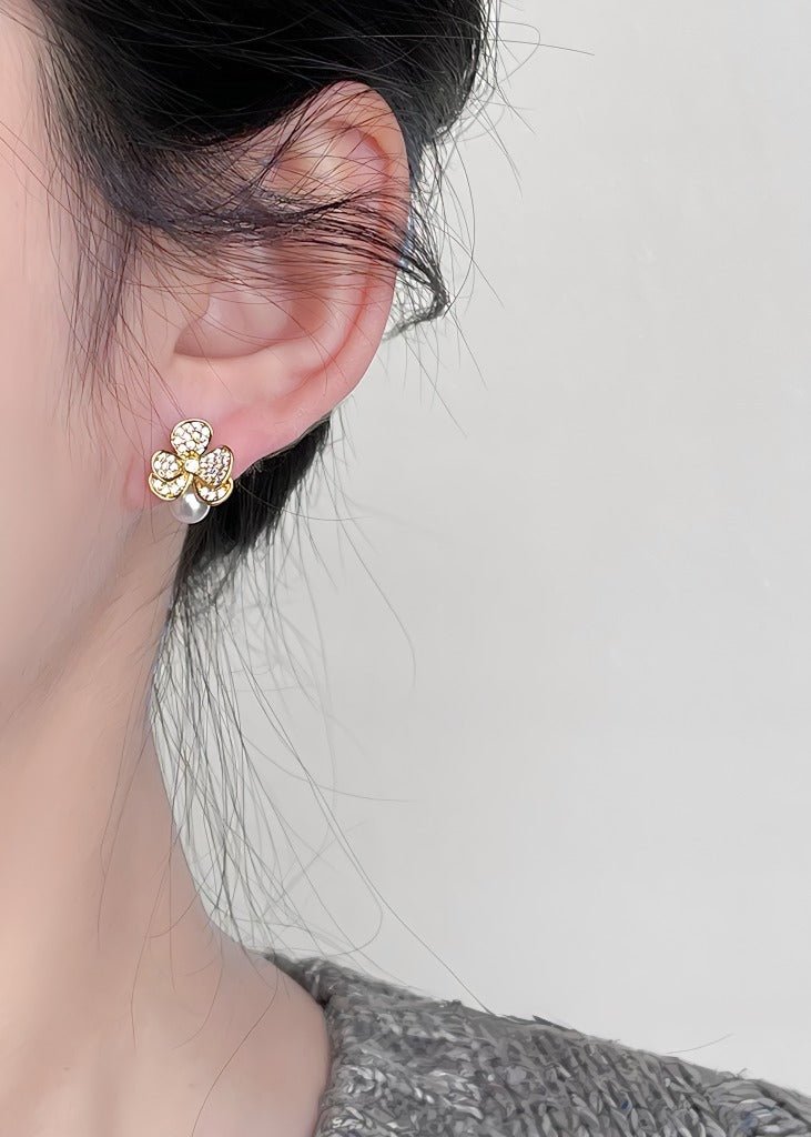 925 Sølv Nål 14K Forgyldt Blomsterformede Øreringe med Perle og Zirkonia