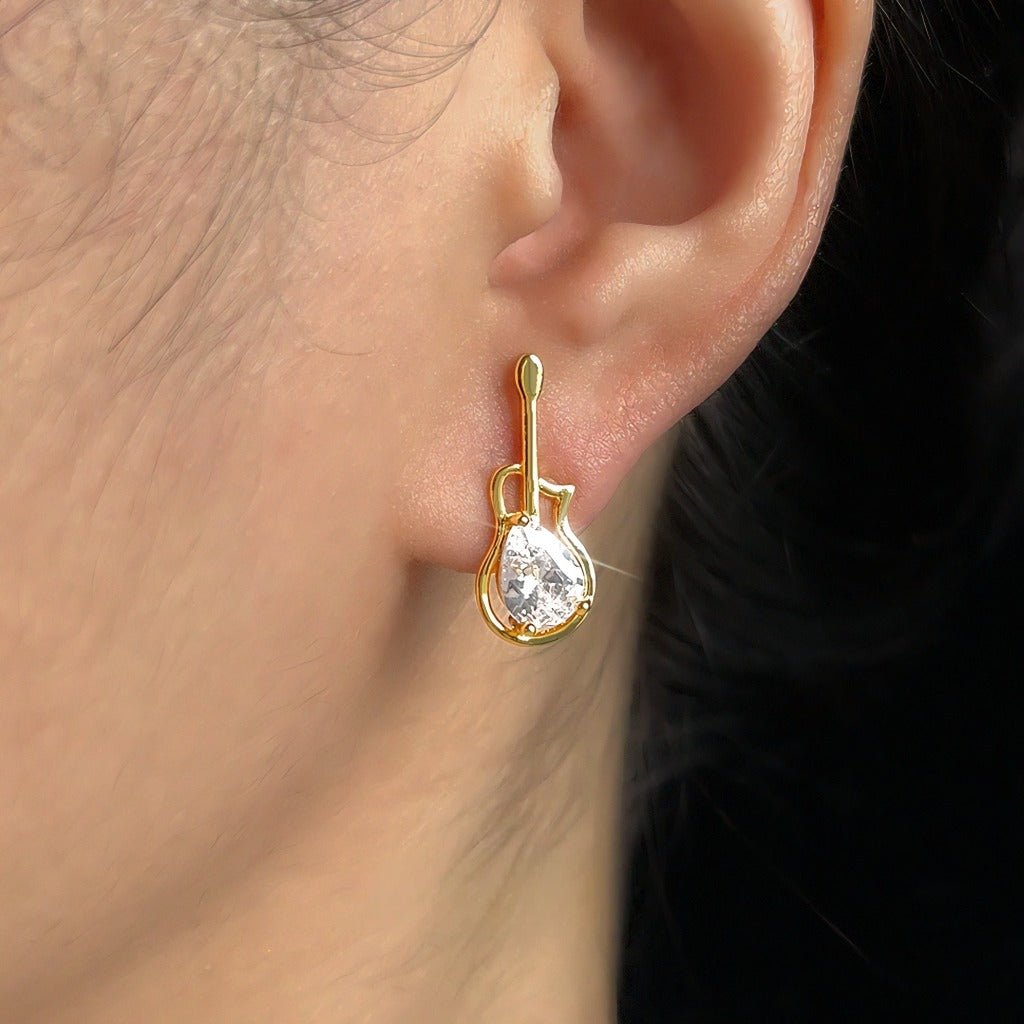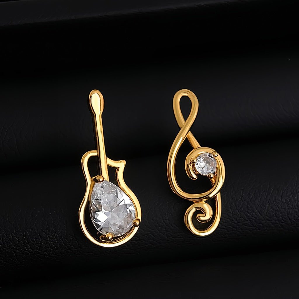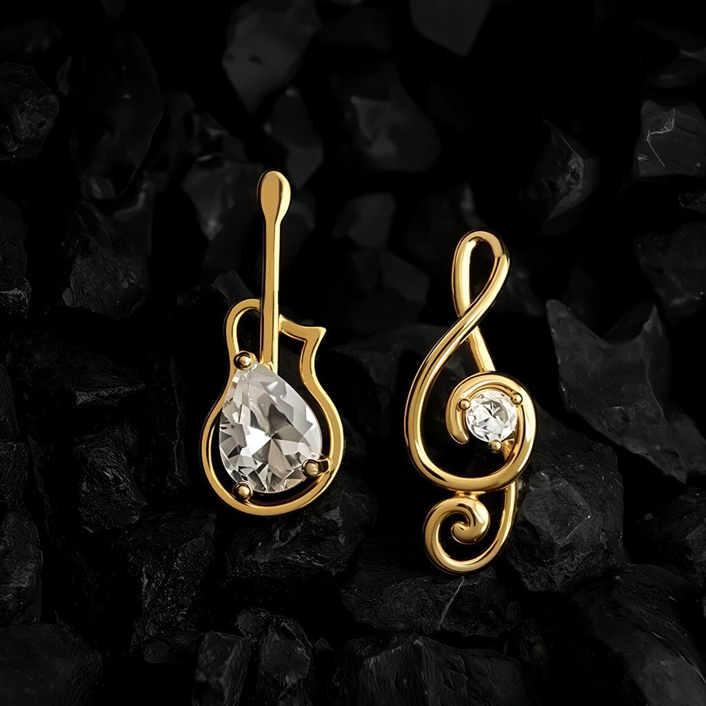Disse musik-inspirerede øreringe kombinerer kunst og elegance i et unikt asymmetrisk design. Den ene ørering er formet som en guitar, den anden som en g-nøgle – et symbol på harmoni, rytme og personlig stil.