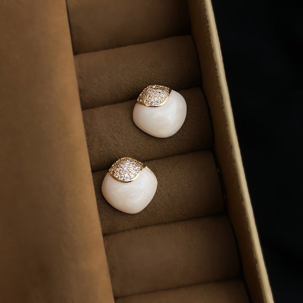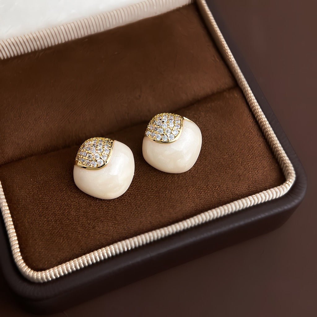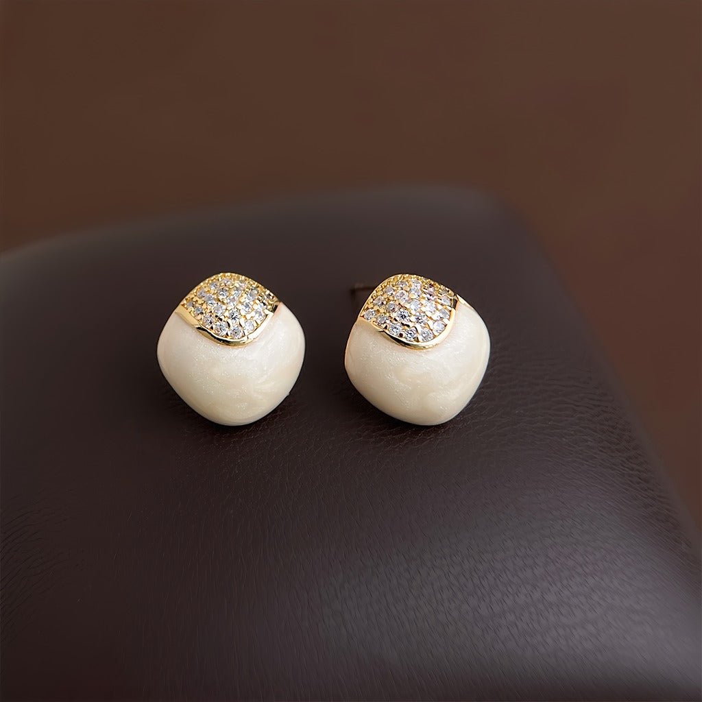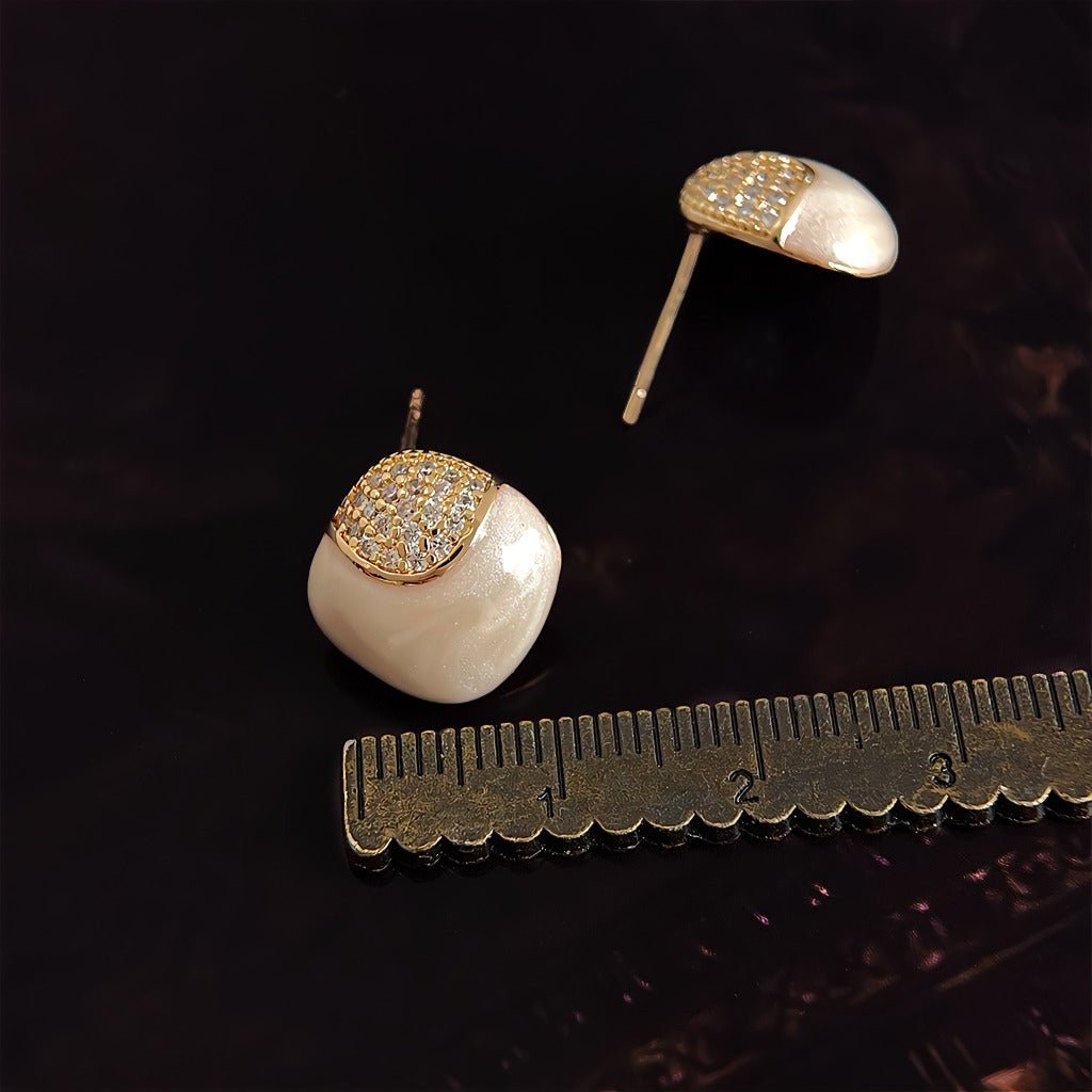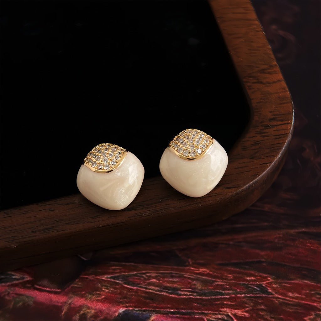 Cream Firkantet Geometrisk Øreringe – 14K Forgyldt & S925 Sølvnål