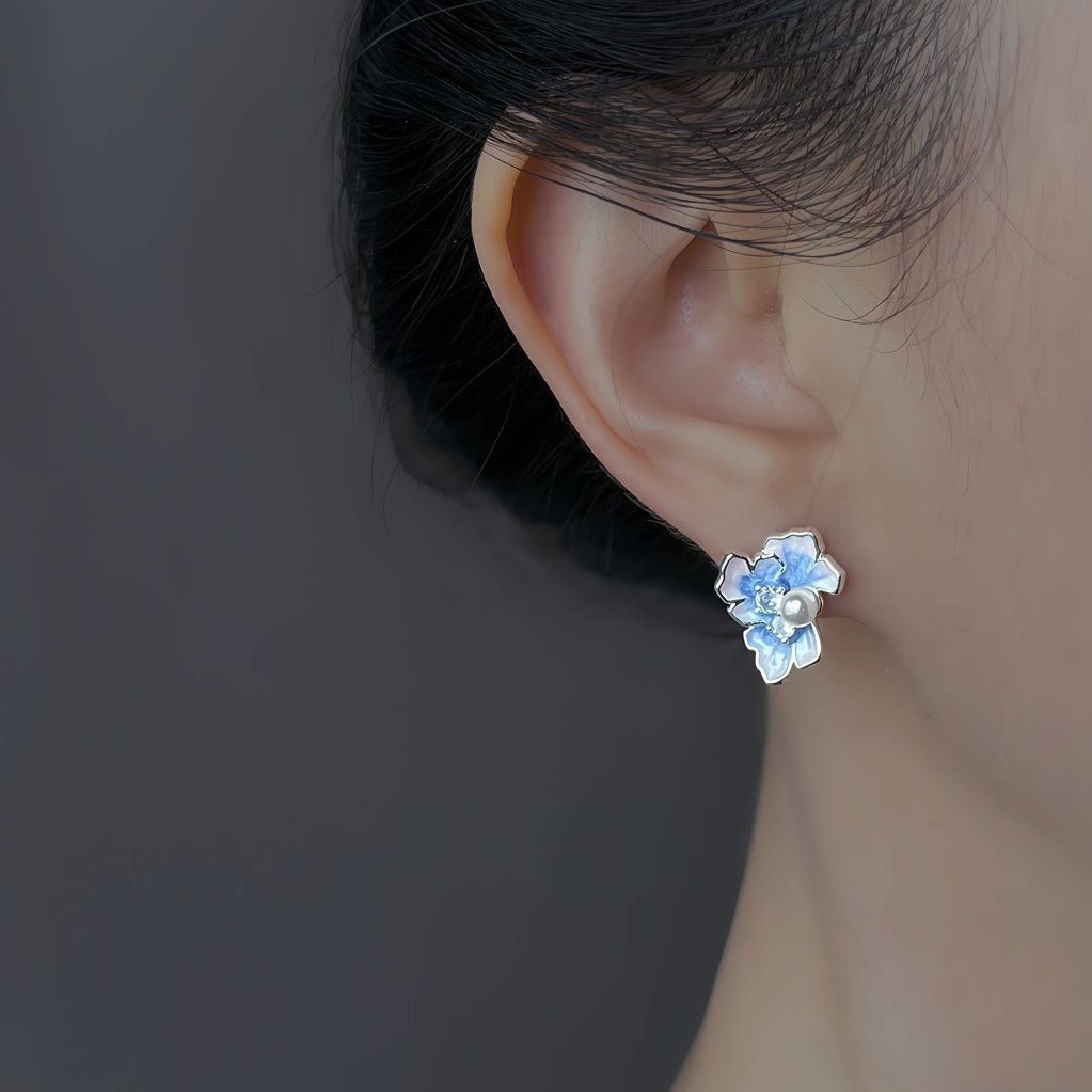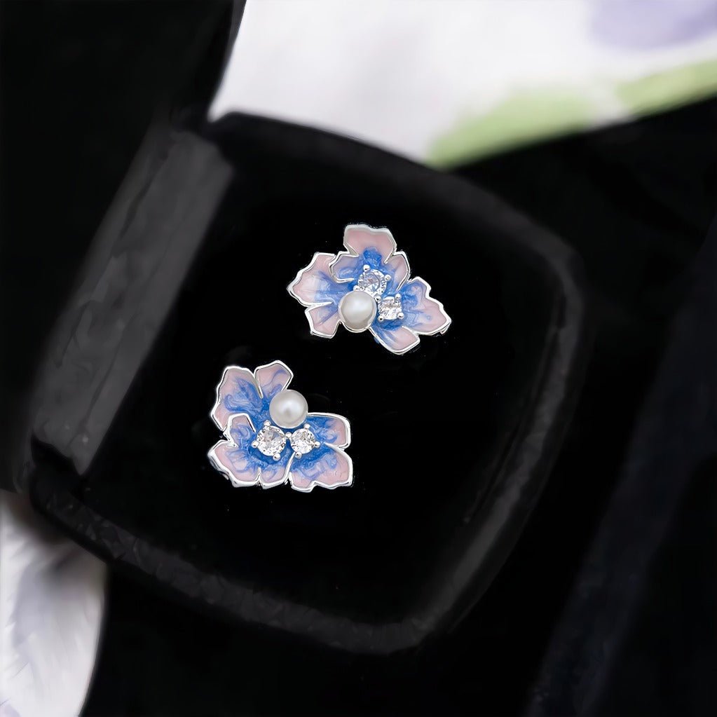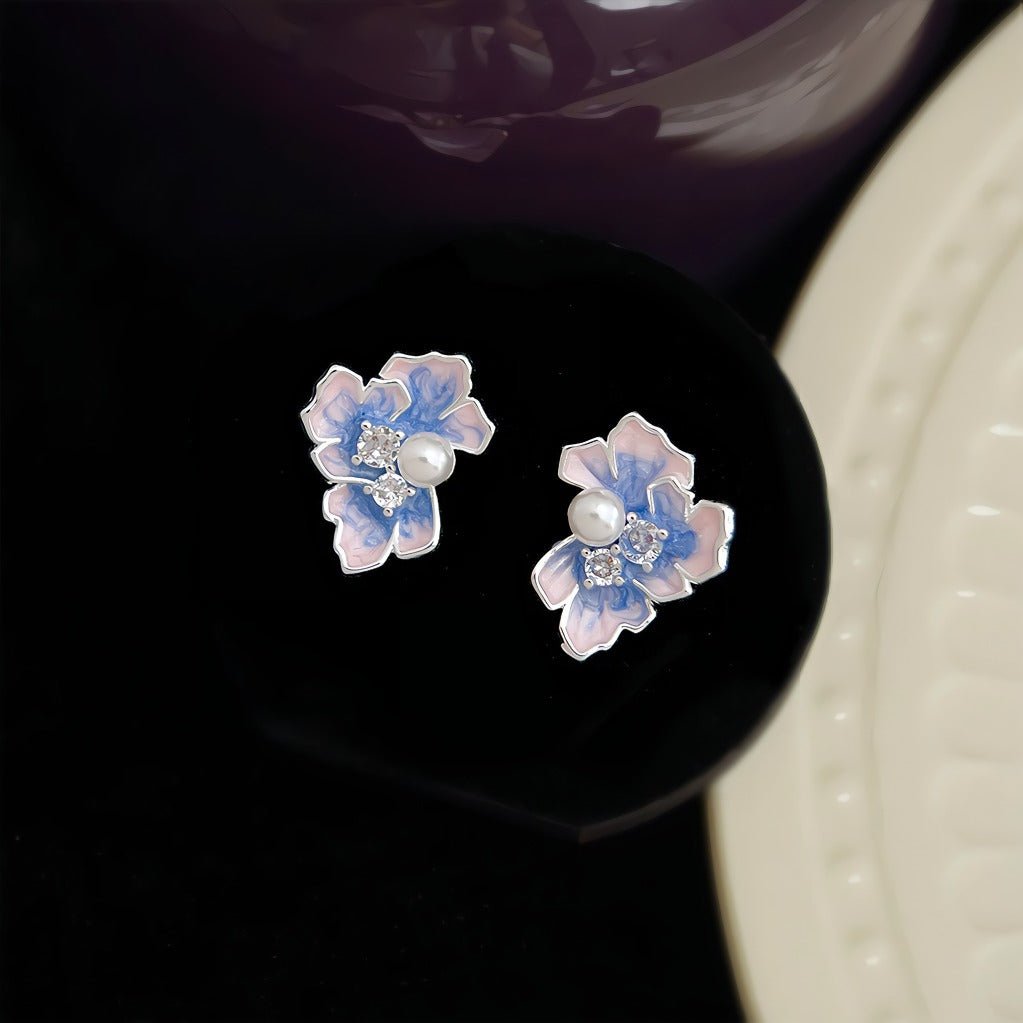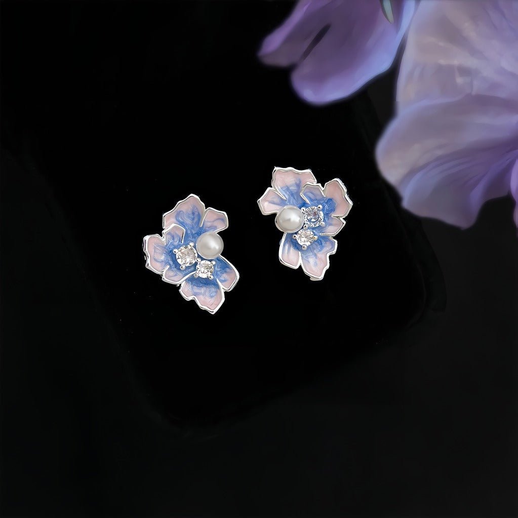 S925 Sølv Kunstneriske Blomster Ørestikker med Zirkonia og Perle
