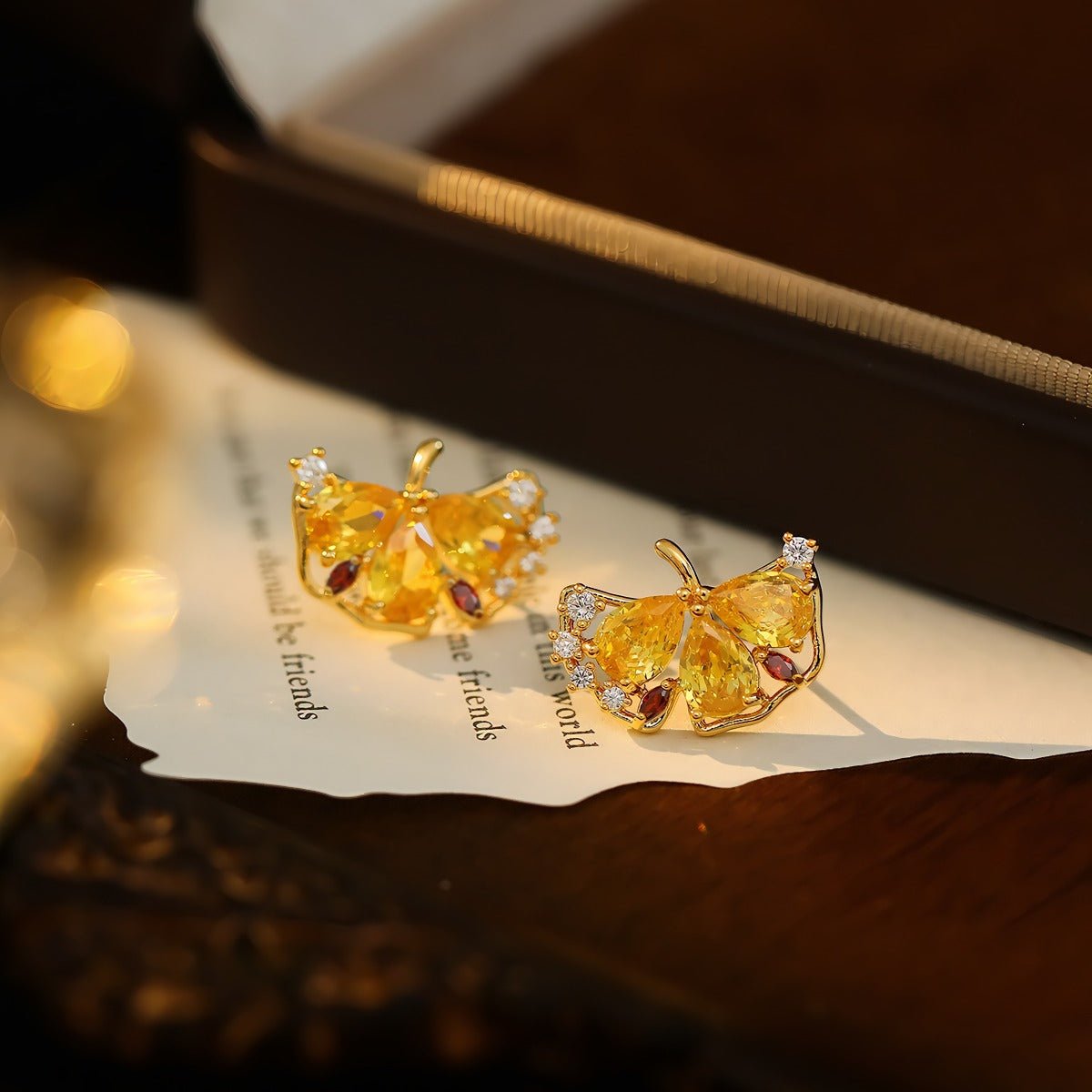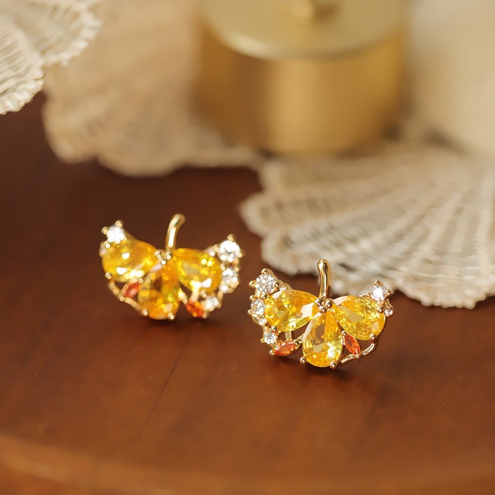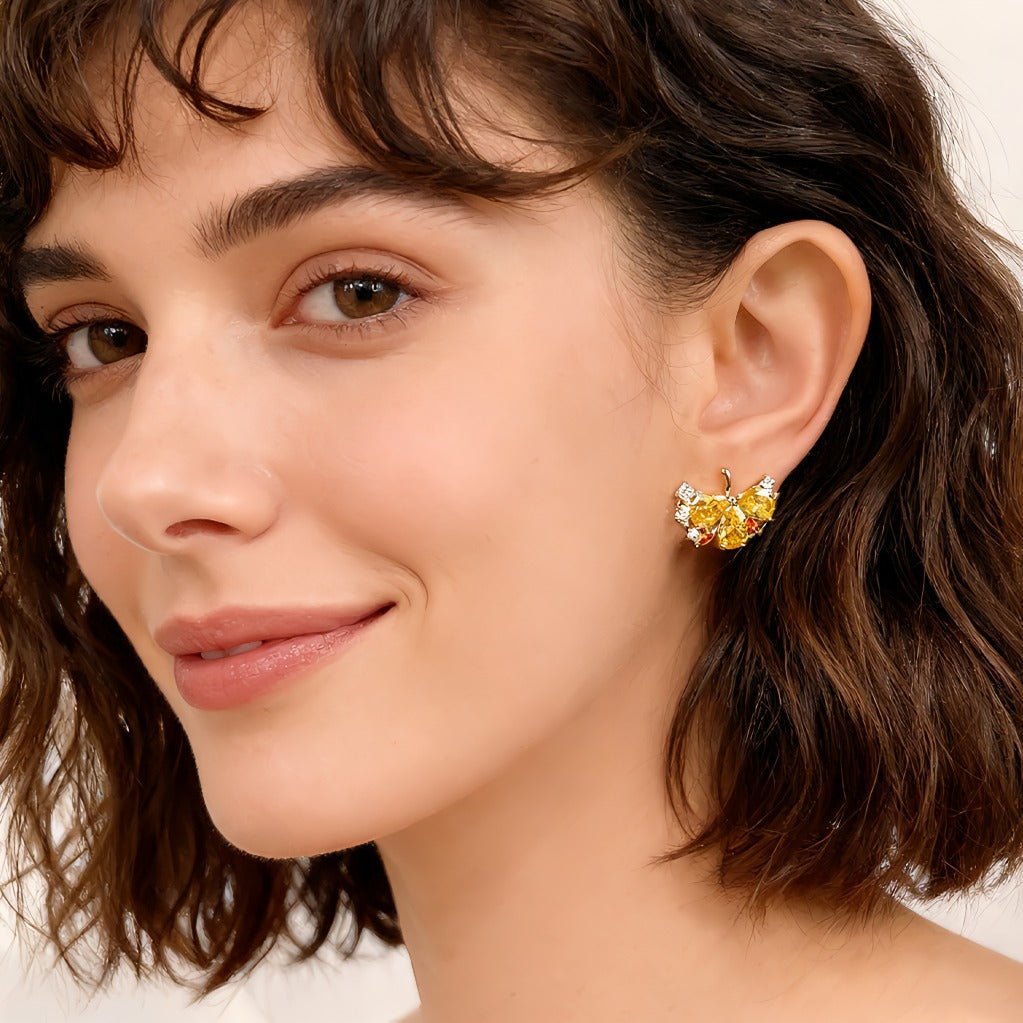 Den varme 16K-forgyldning understreger de organiske former og tilfører smykket en blød glans, der harmonerer smukt med de gyldne og klare nuancer i stenene. Ørestikkernes proportioner er nøje afstemt, så de fremstår elegante og iøjnefaldende, men stadig lette og behagelige at bære.