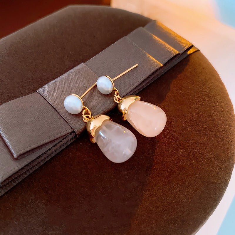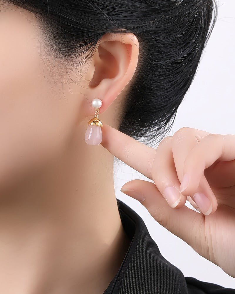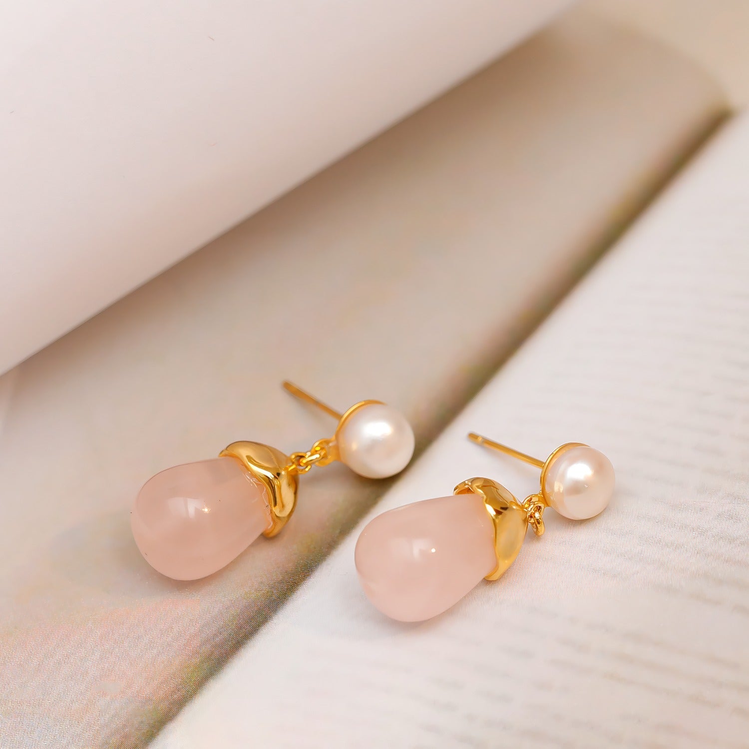 Disse smukke øreringe kombinerer klassiske materialer med bløde, romantiske detaljer. Øverst sidder en naturlig ferskvandsperle, som tilfører elegance og tidløshed, mens den lyserøde dråbeformede sten nederst fremhæver et let og feminint udtryk.