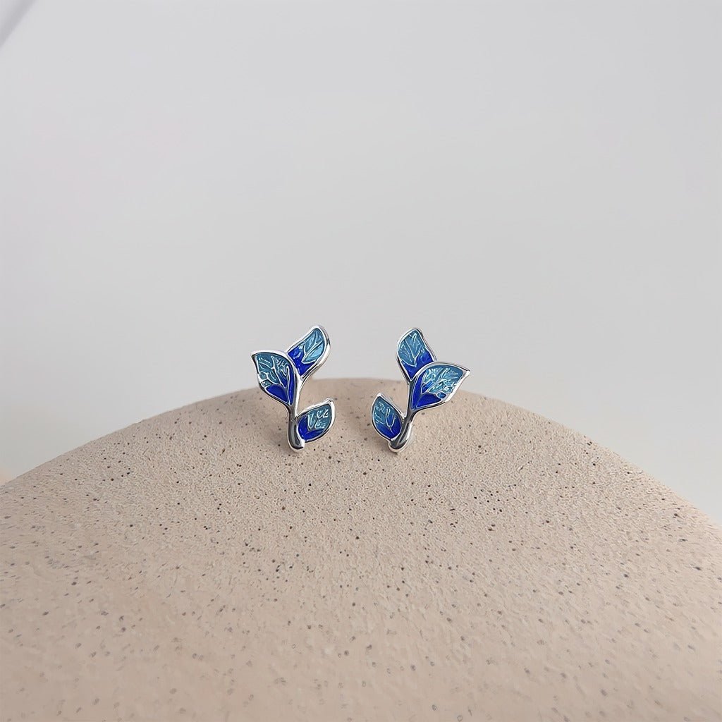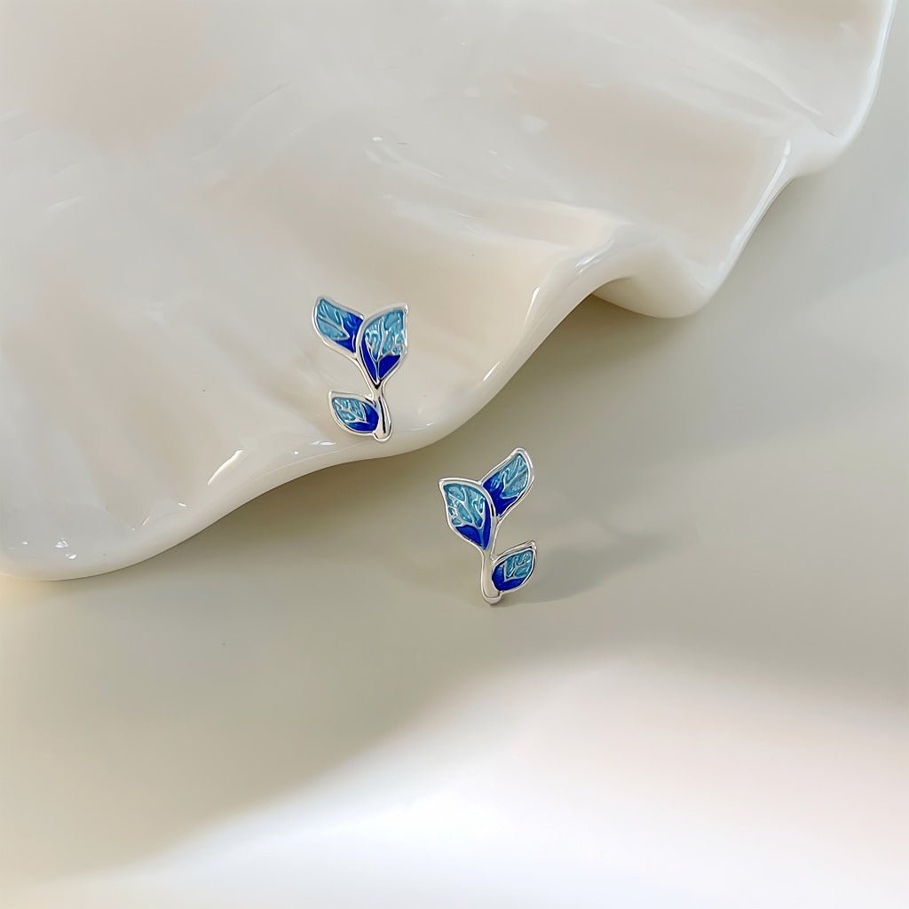 Design: Små blade i smukke blå nuancer med fine detaljer, der fanger lyset og tilføjer et strejf af farve og elegance til ethvert outfit.