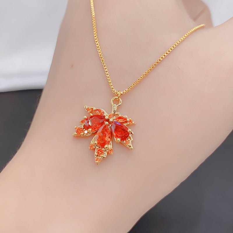 Add a touch of elegance to your jewelry collection with this beautiful 14K gold-plated necklace, adorned with an exquisite pendant shaped like a maple leaf. The necklace is made of nickel-free copper, ensuring that it is hypoallergenic and comfortable to wear.