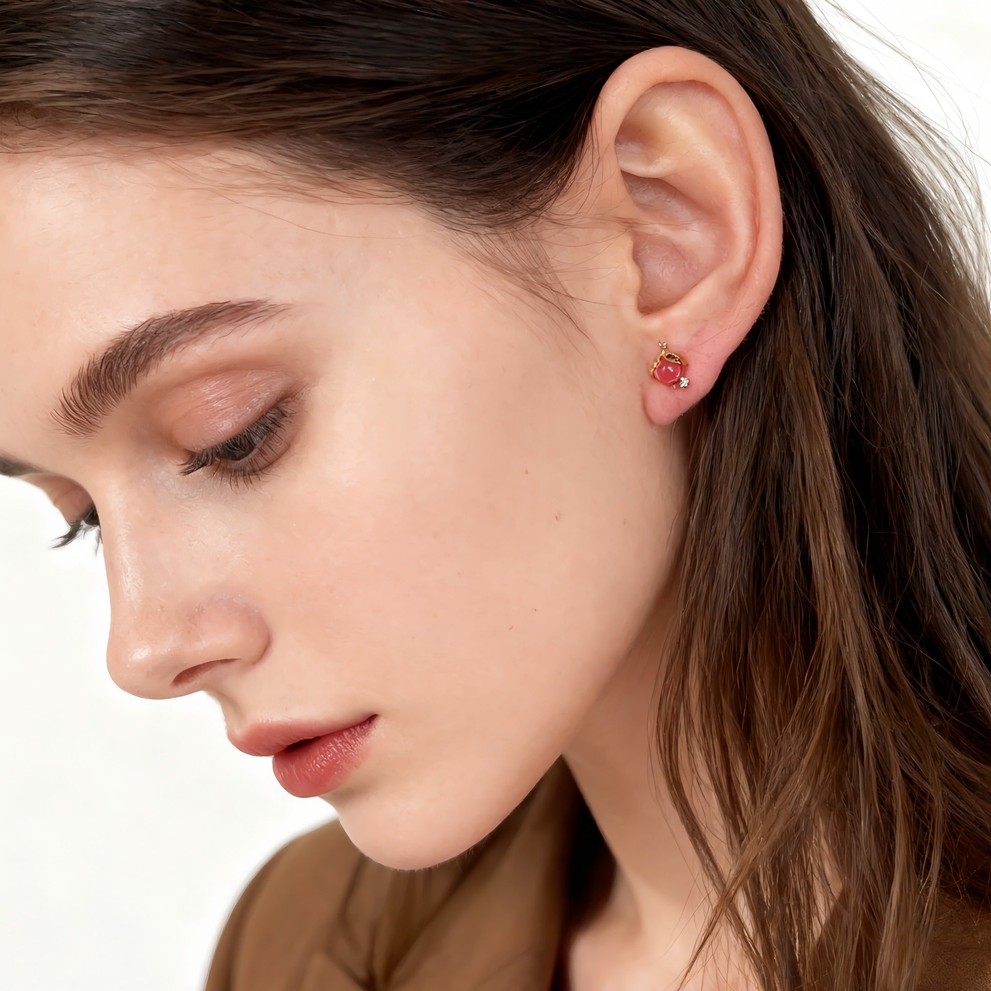 The design is intentionally kept compact and lightweight so the earrings sit elegantly close to the ear and feel comfortable all day. The combination of rounded shapes, glossy surfaces and small sparkling details creates a feminine, well-considered design that works as well for everyday wear as for more dressed-up outfits.