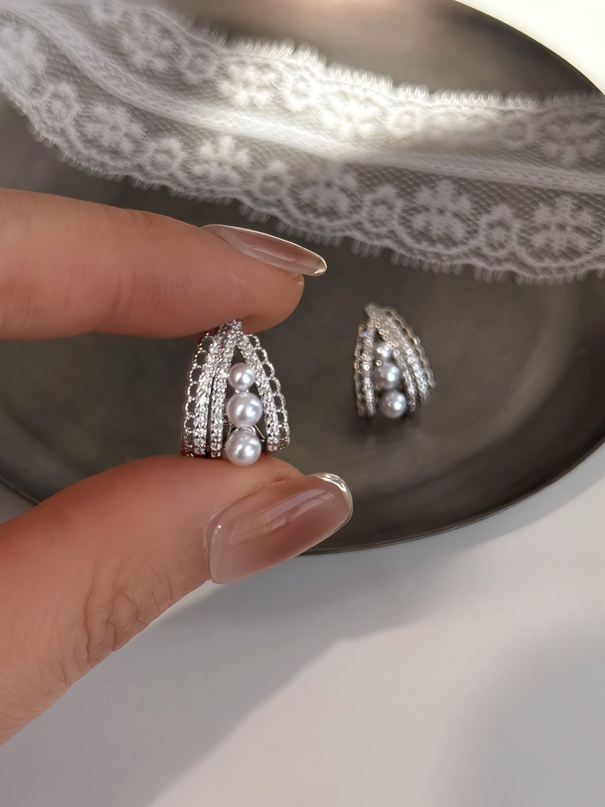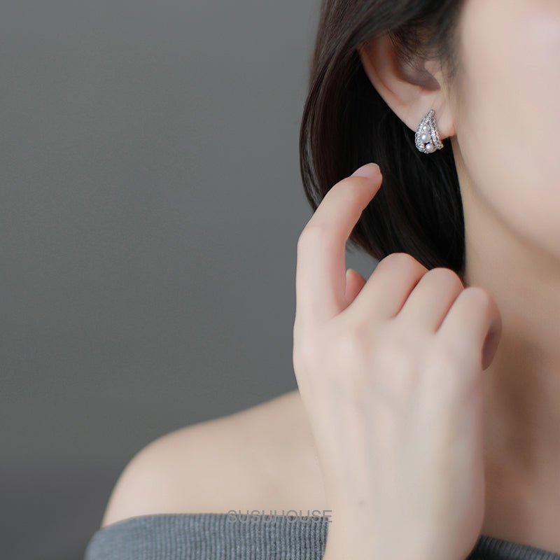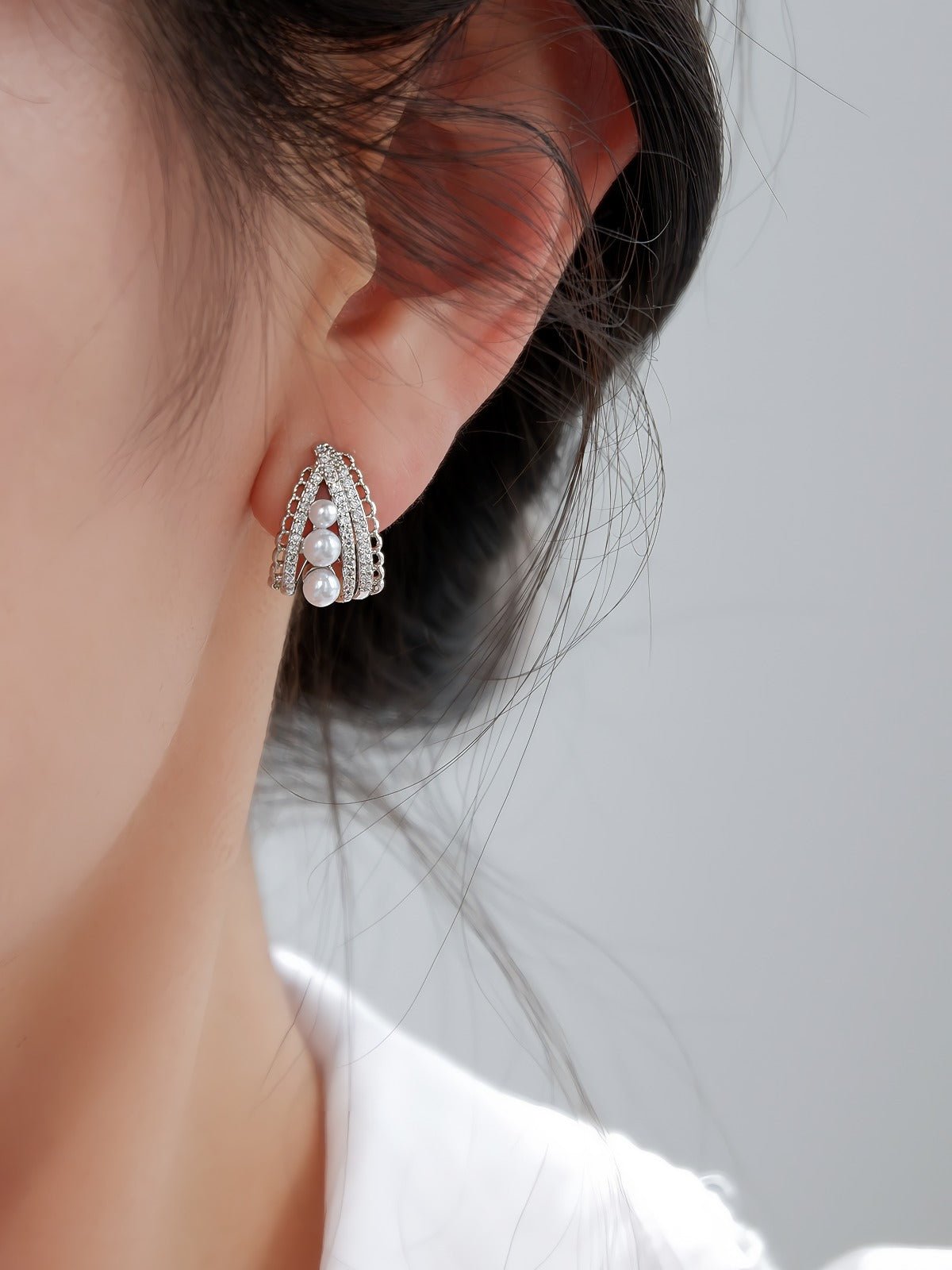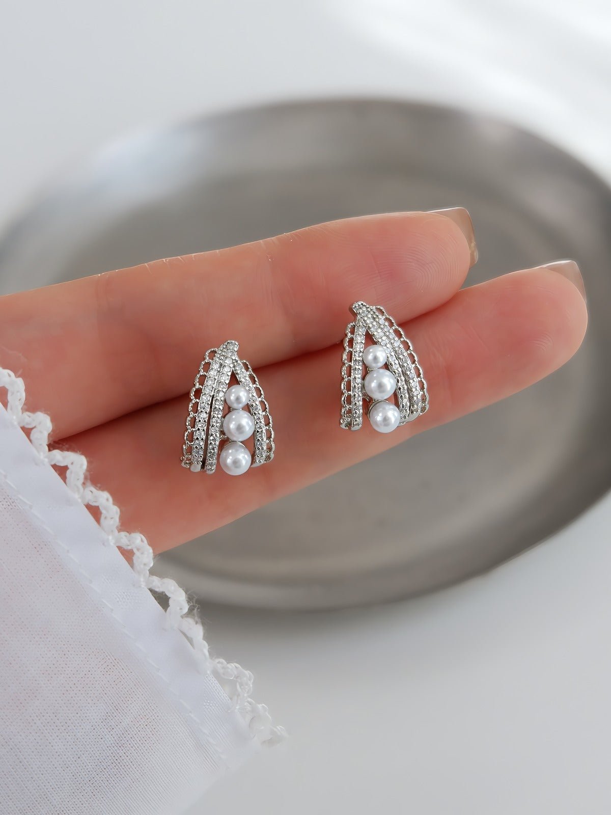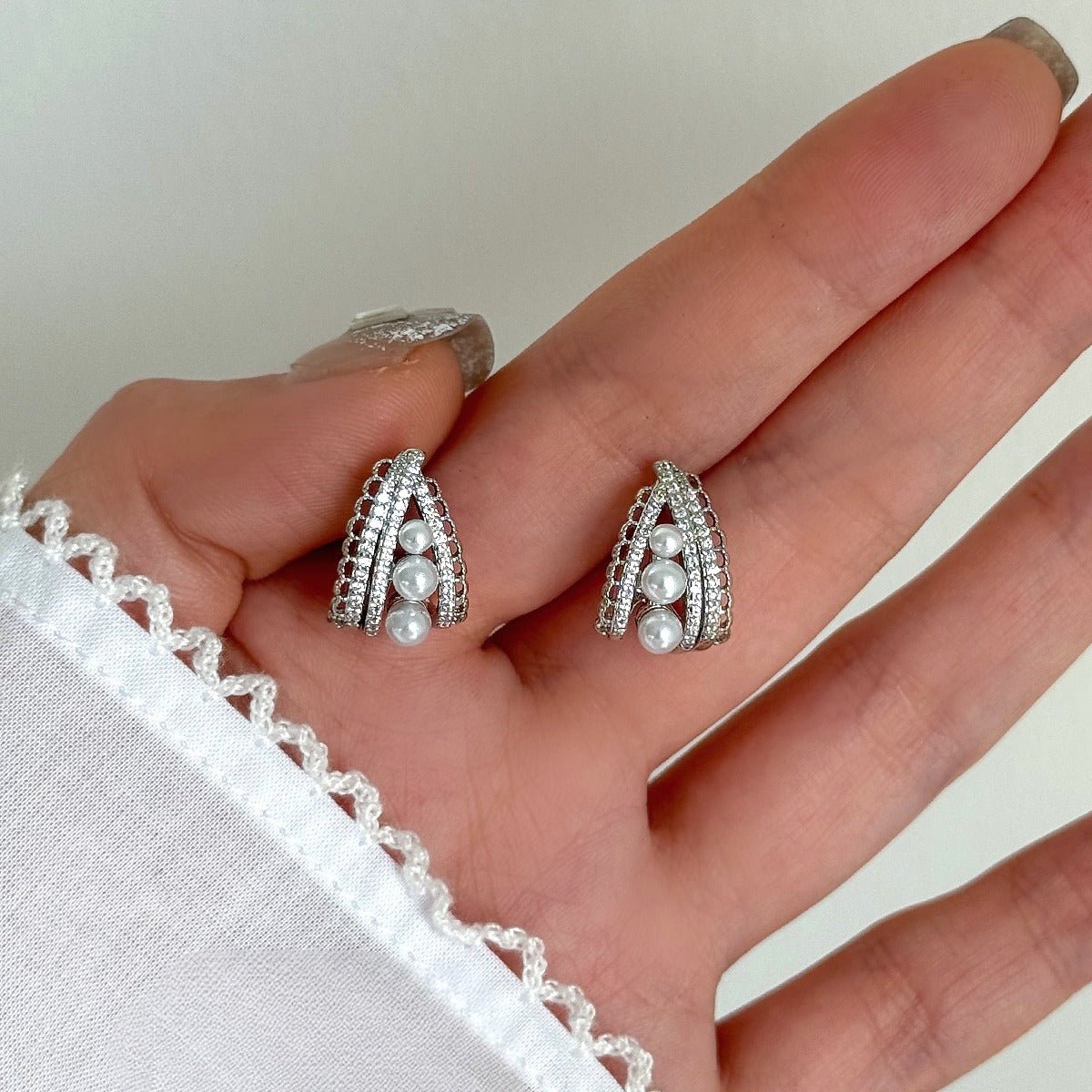 Experience the timeless elegance of these French lace-inspired earrings, combining the delicate beauty of imitation pearls and zircon stones. The earrings feature a classic lace style with micro-set zircon stones that catch the light beautifully, and a pearl that serves as the central element of the design. This perfect blend of romance and glamour creates a subtle yet striking expression.