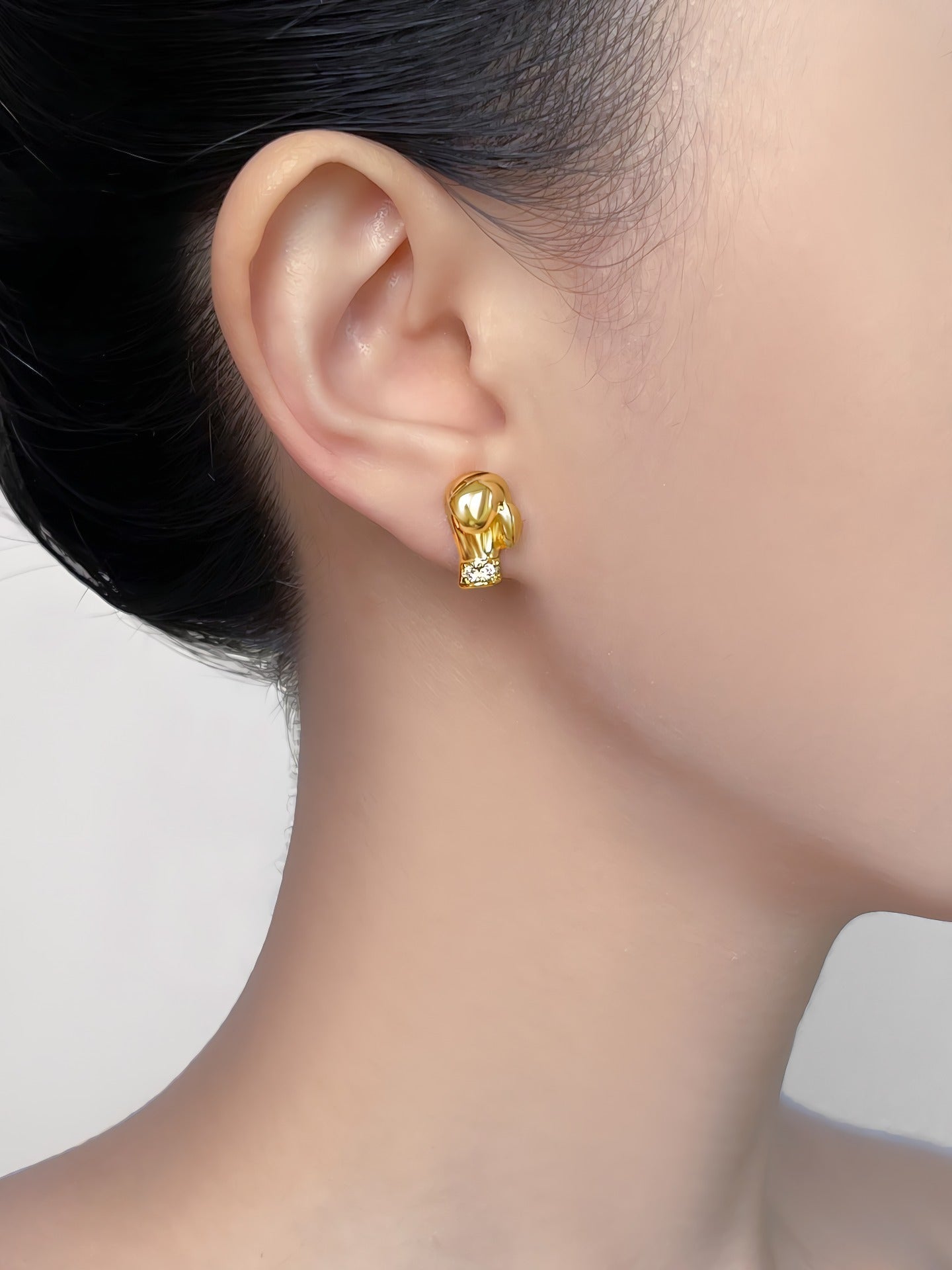 The studs are made on a copper base with 18K gold plating for a warm, luxurious gold tone and good color durability. The post is made of S925 sterling silver, ensuring high wearing comfort—even for sensitive ears.