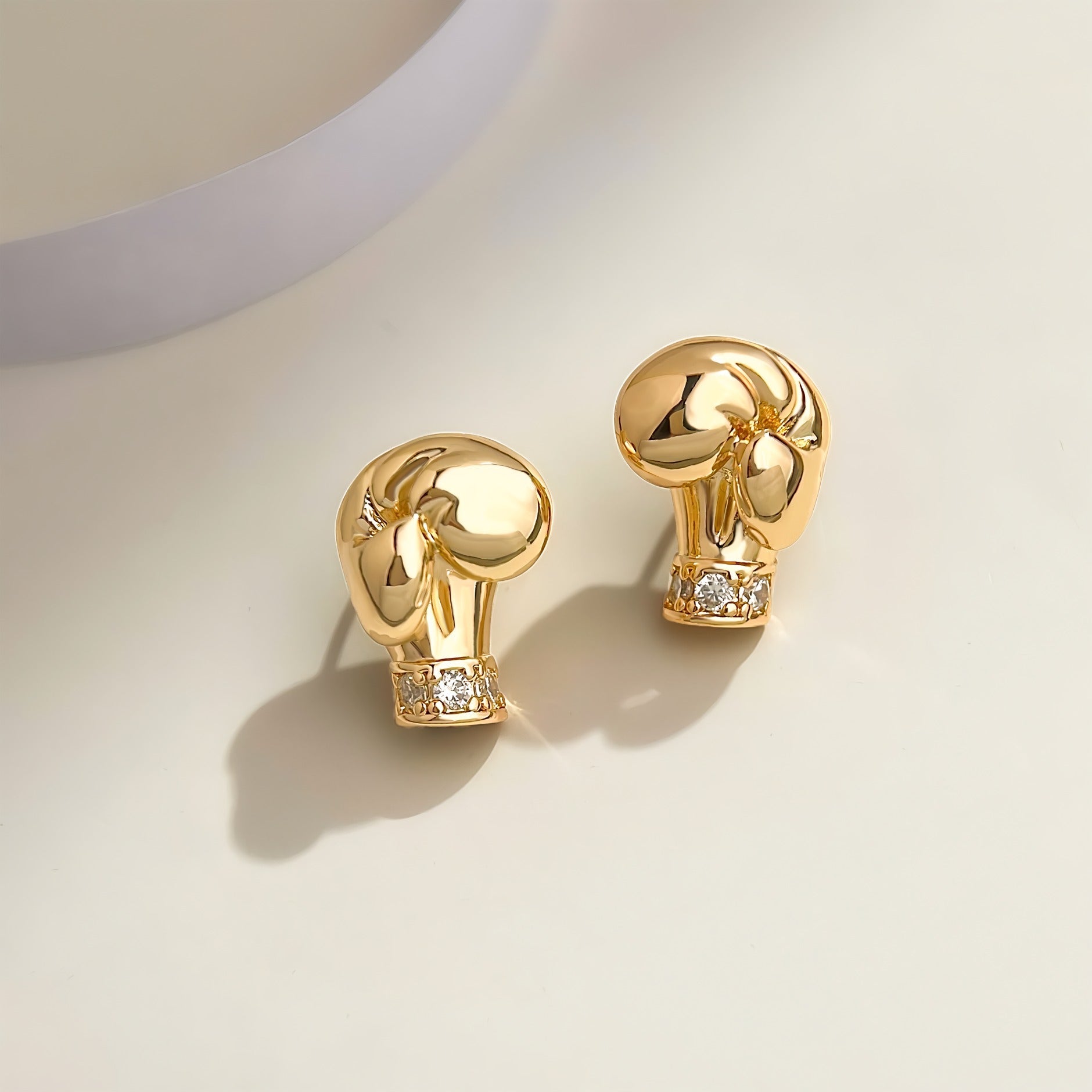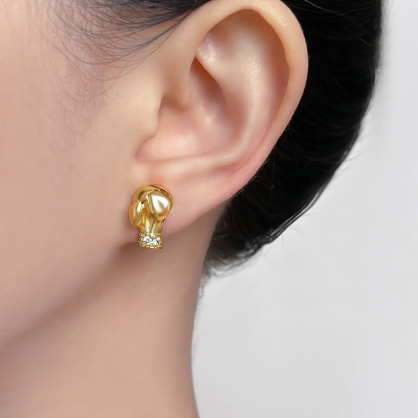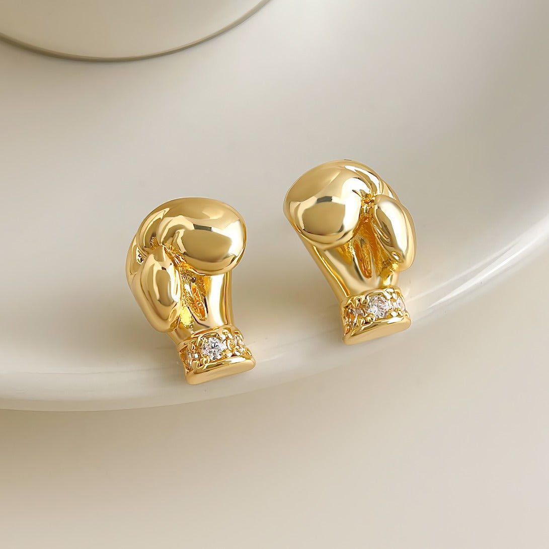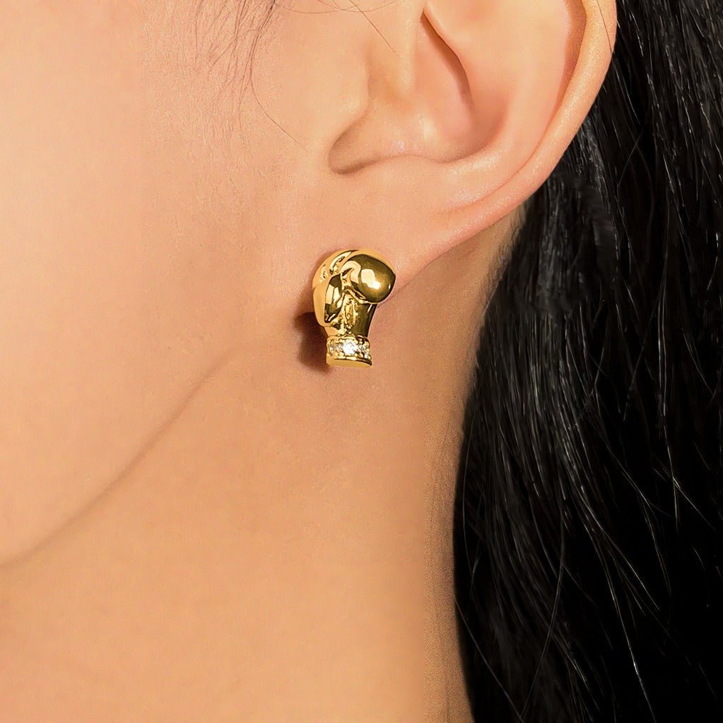 At the base of the boxing glove, fine zirconia stones are elegantly set as a subtle detail that adds a light sparkle and creates a balance between raw strength and feminine elegance. The jewelry is eye-catching without feeling heavy and works perfectly as a sleek statement for both everyday wear and more striking outfits.