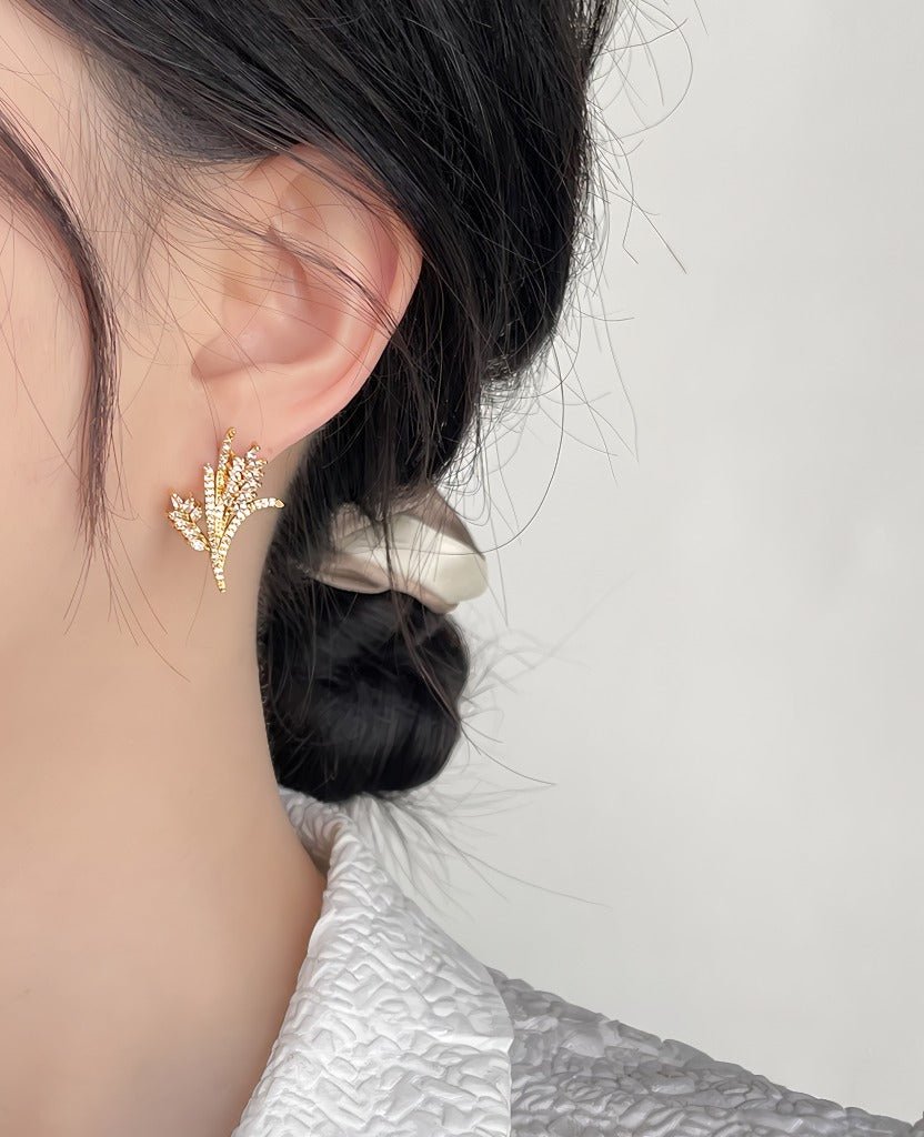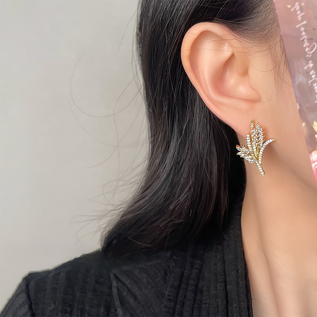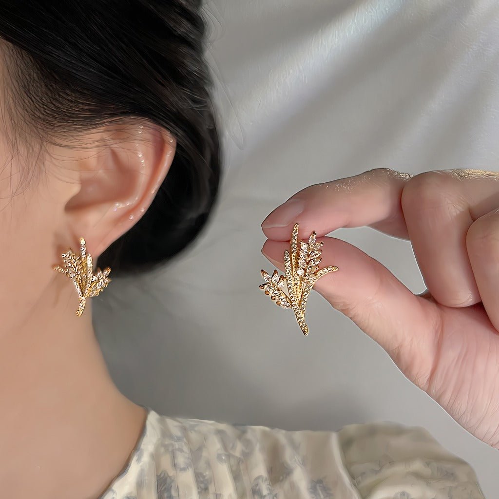 These earrings are inspired by vintage aesthetics and the elegance of nature, with each leaf- and wheat-stalk-like element adorned with sparkling microset zirconia stones. This creates a delicate yet glamorous look that exudes sophisticated luxury.