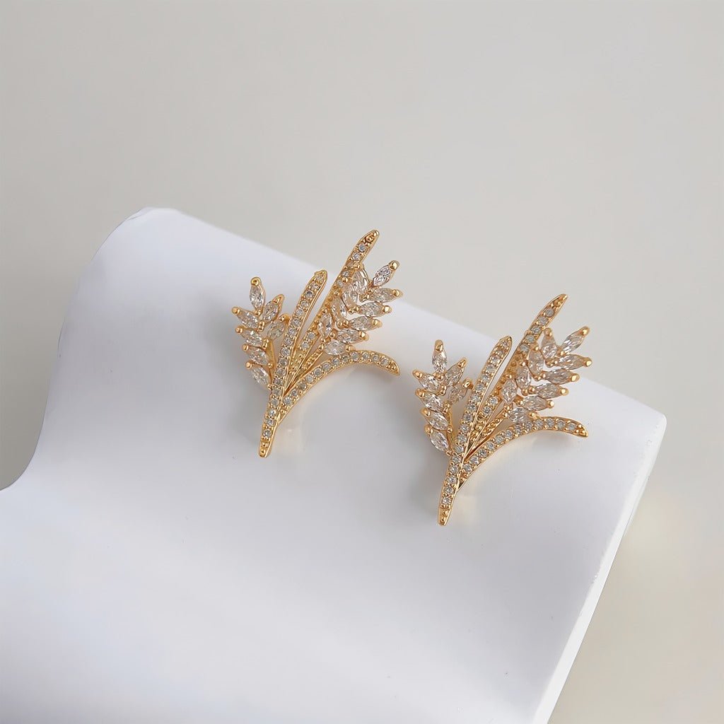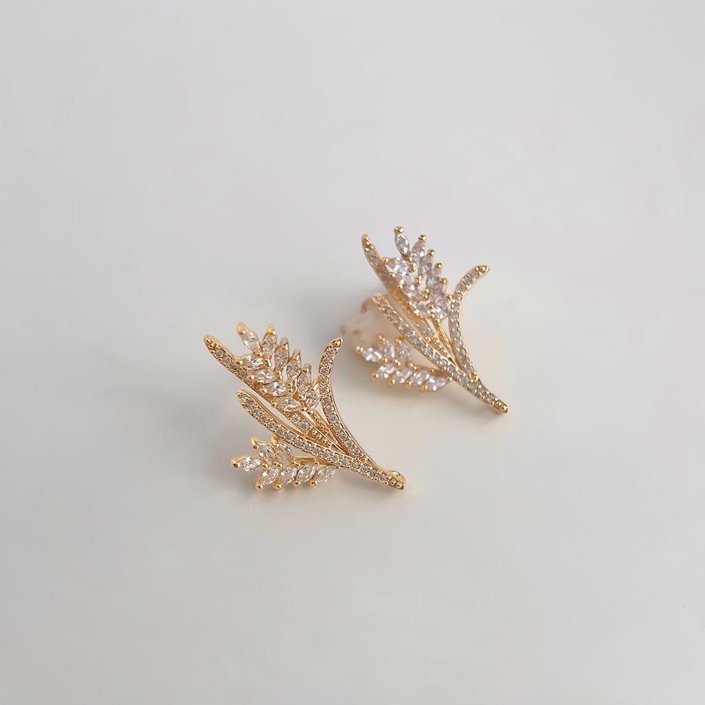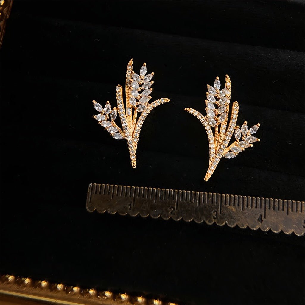 18K Gold-Plated Earrings with Zirconia in Vintage Wheat/Leaf Design – Elegant & Artistic