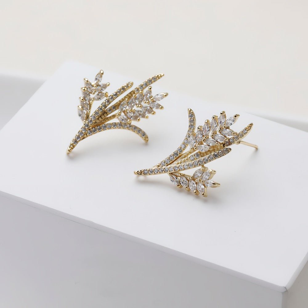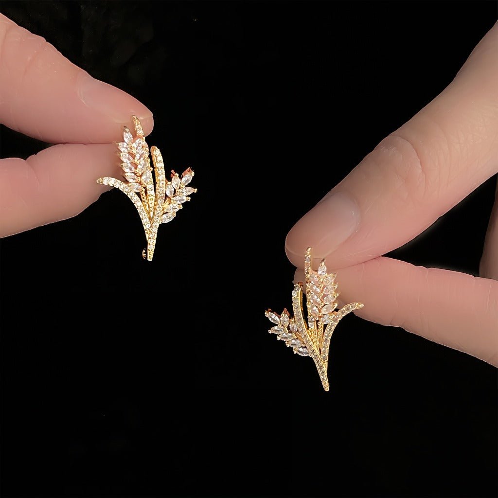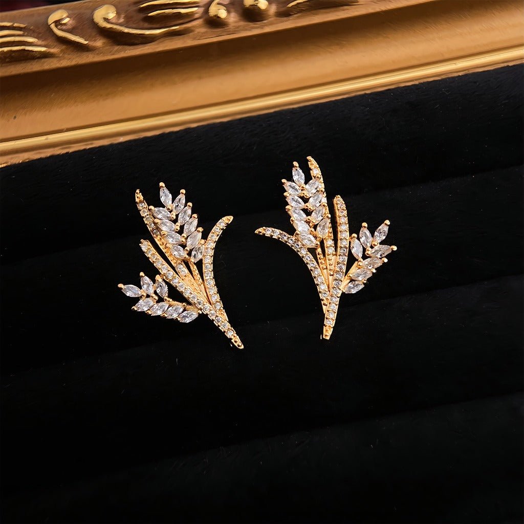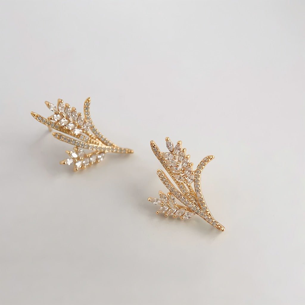 18K Gold-Plated Earrings with Zirconia in Vintage Wheat/Leaf Design – Elegant & Artistic