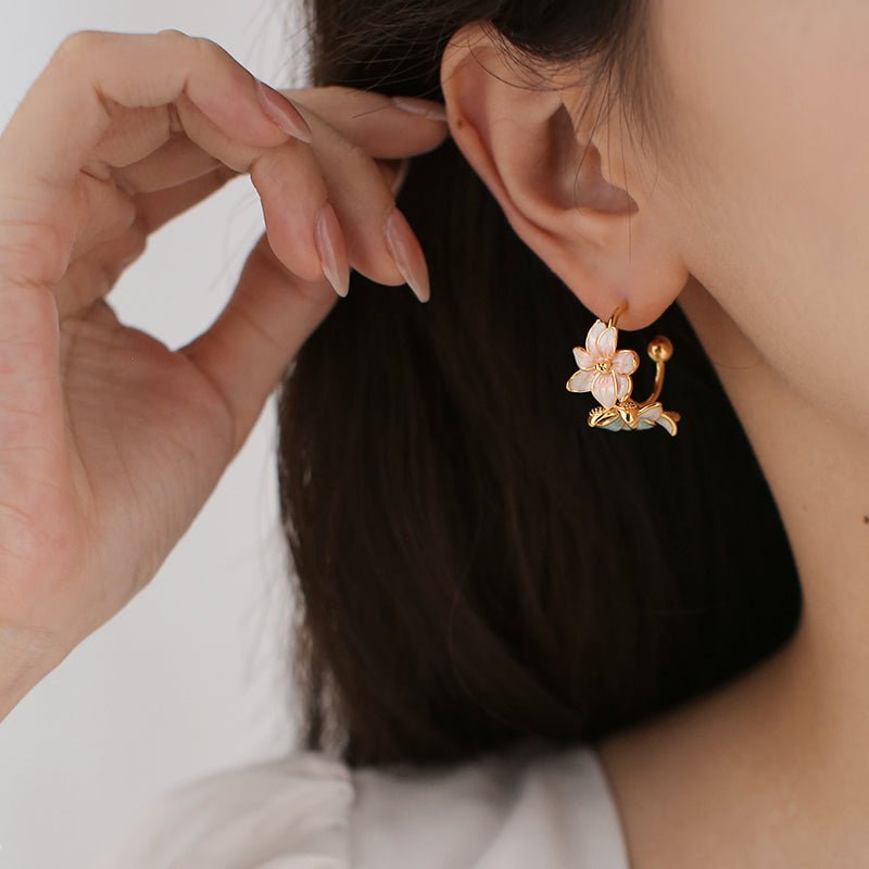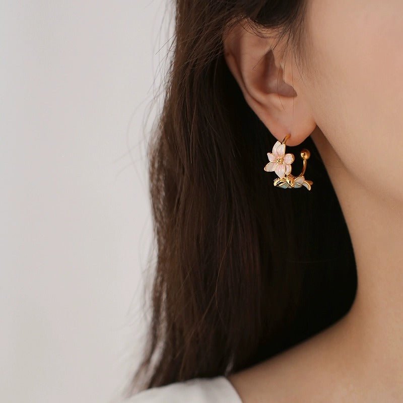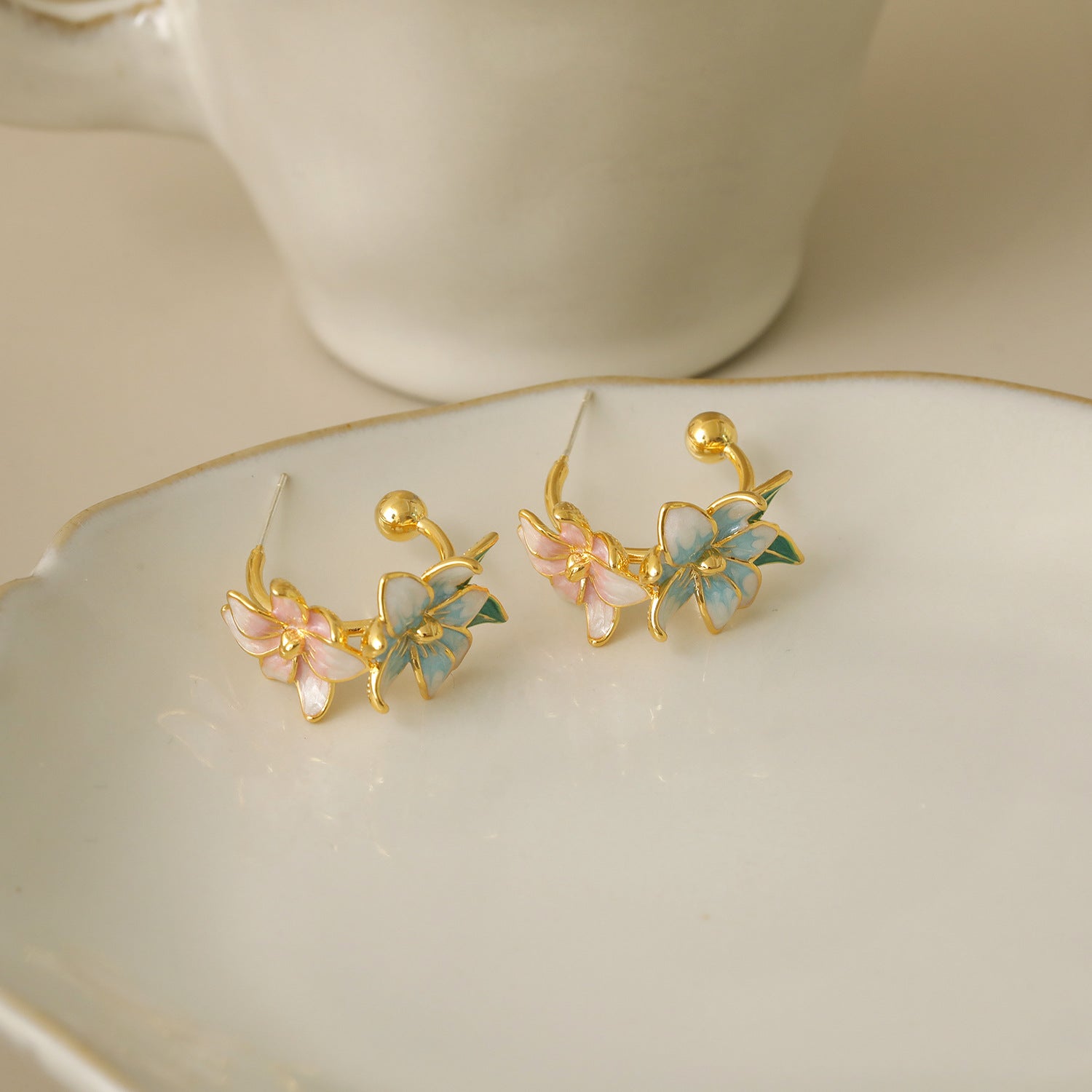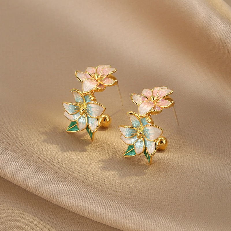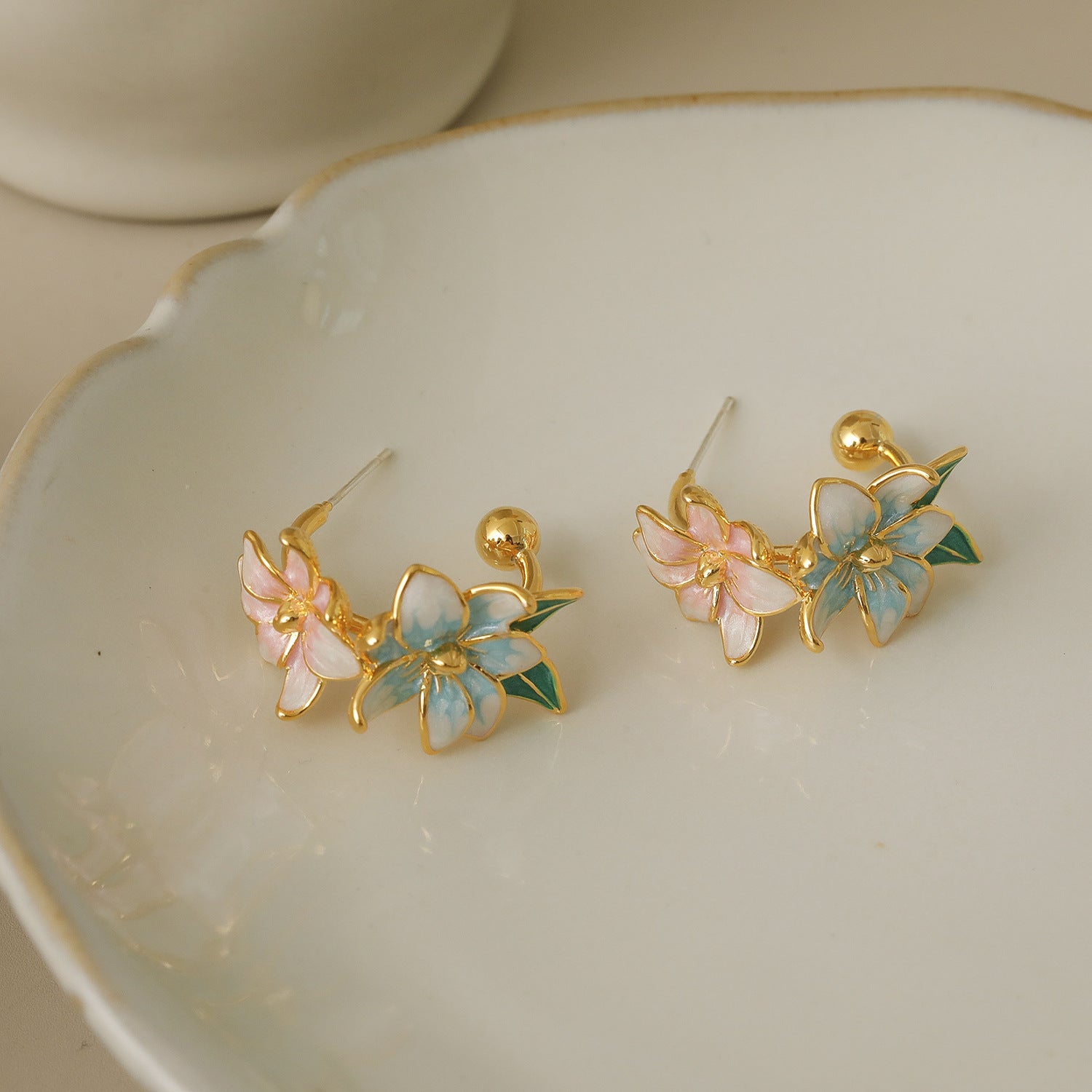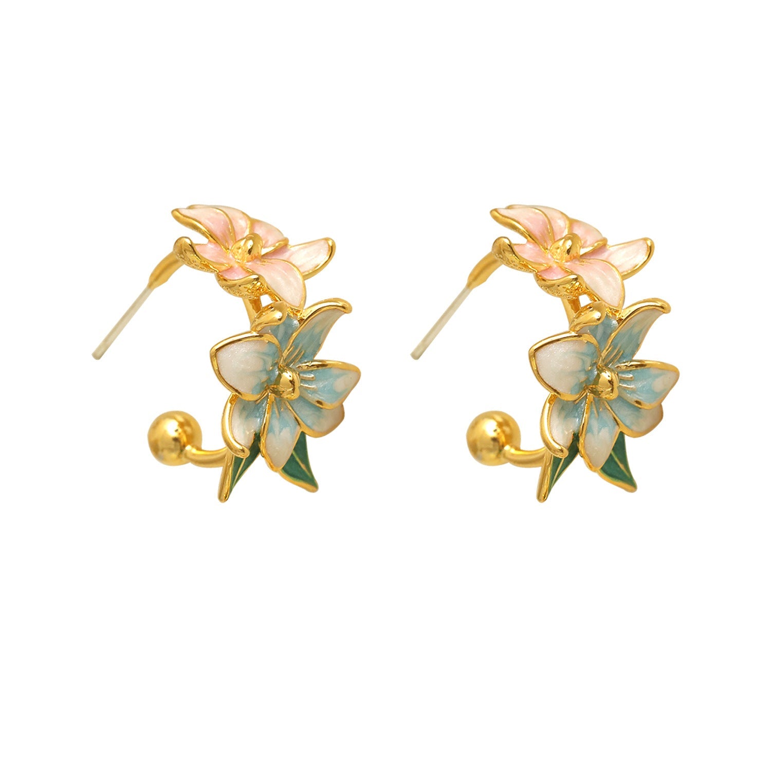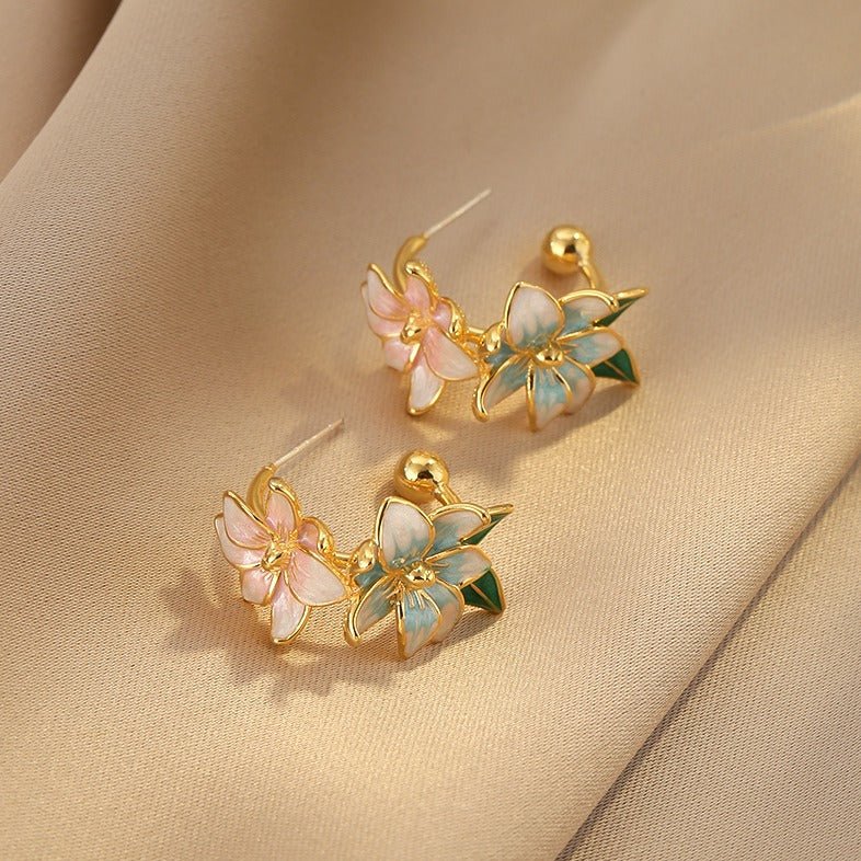 18K Gold-Plated Flower Earrings with Enamel – Elegant and Unique Design