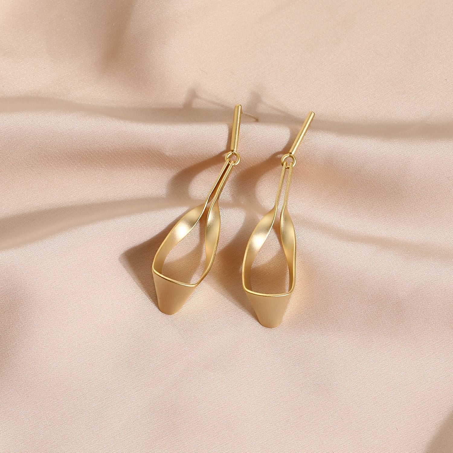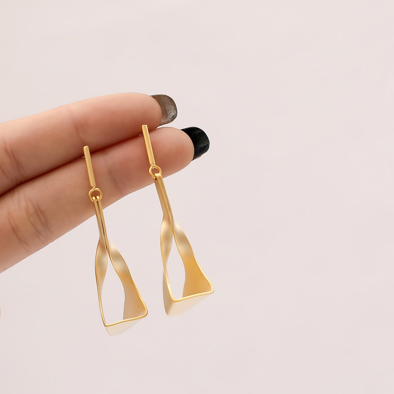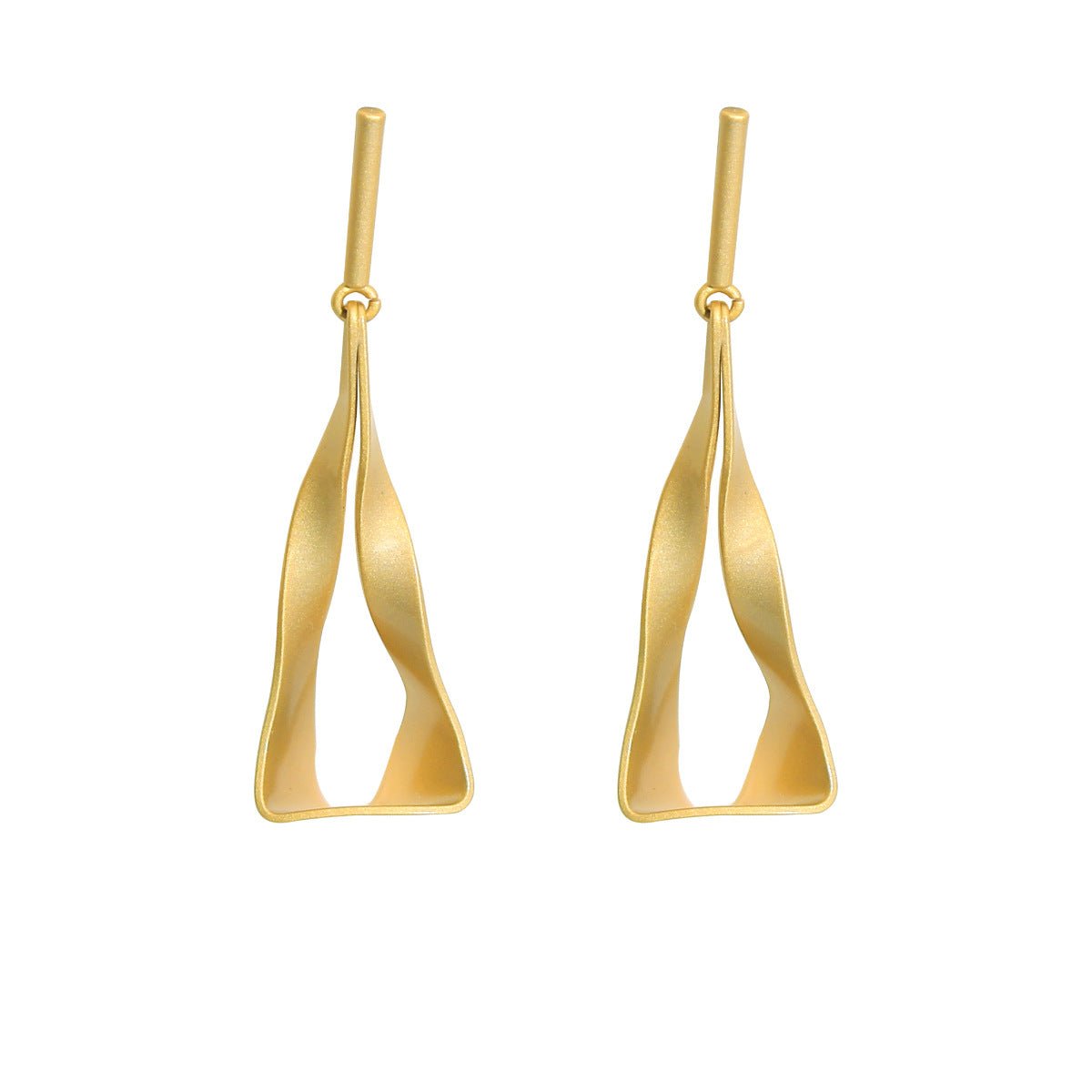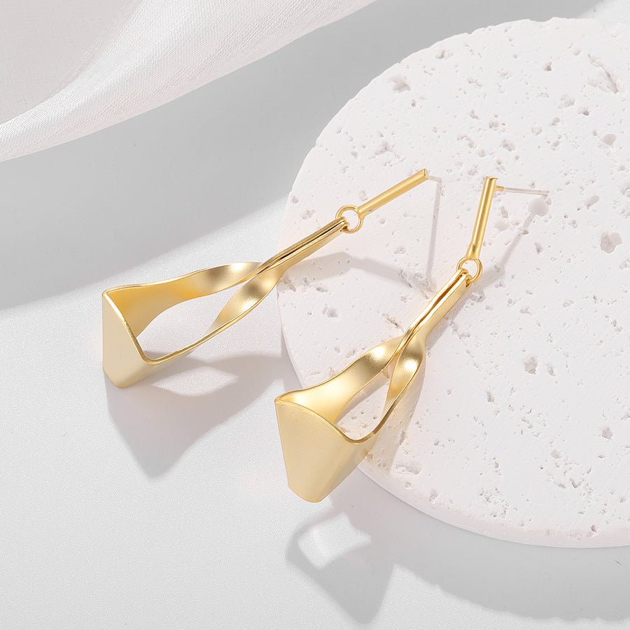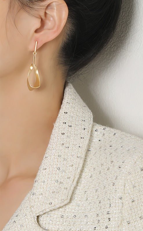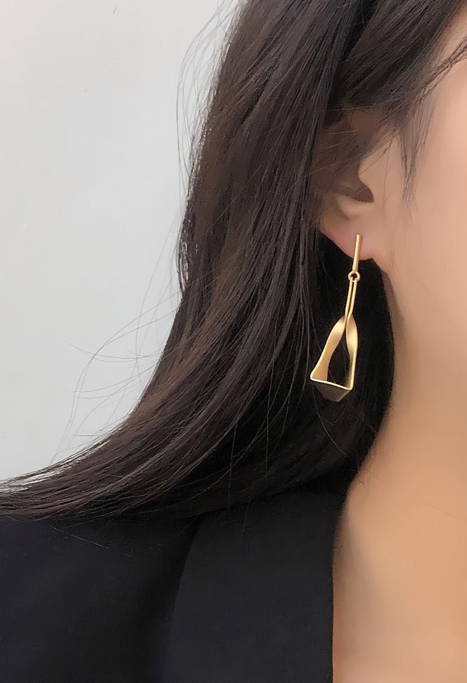 De gebogen vorm beweegt zich sierlijk vanaf de oorlel naar beneden in een zachte spiraal, wat een illusie van beweging en lichtheid creëert, zelfs wanneer je stil staat. De matte afwerking geeft een subtiele, verfijnde uitstraling, die balanceert tussen ruwe minimalisme en luxe.