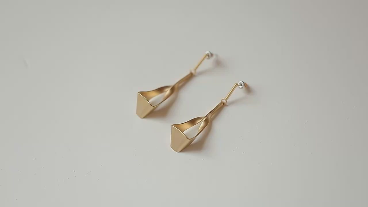 Deze unieke oorbellen zijn een ode aan moderne esthetiek en sculpturale elegantie. Geïnspireerd door architectonische vormen en vloeiende bewegingen, wordt het ontwerp gekenmerkt door een gedurfde twist die een dynamische silhouet creëert en het licht vanuit alle hoeken vangt.