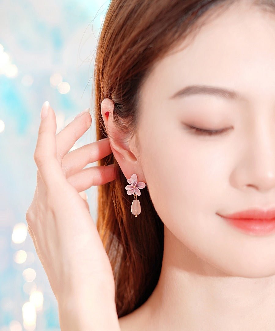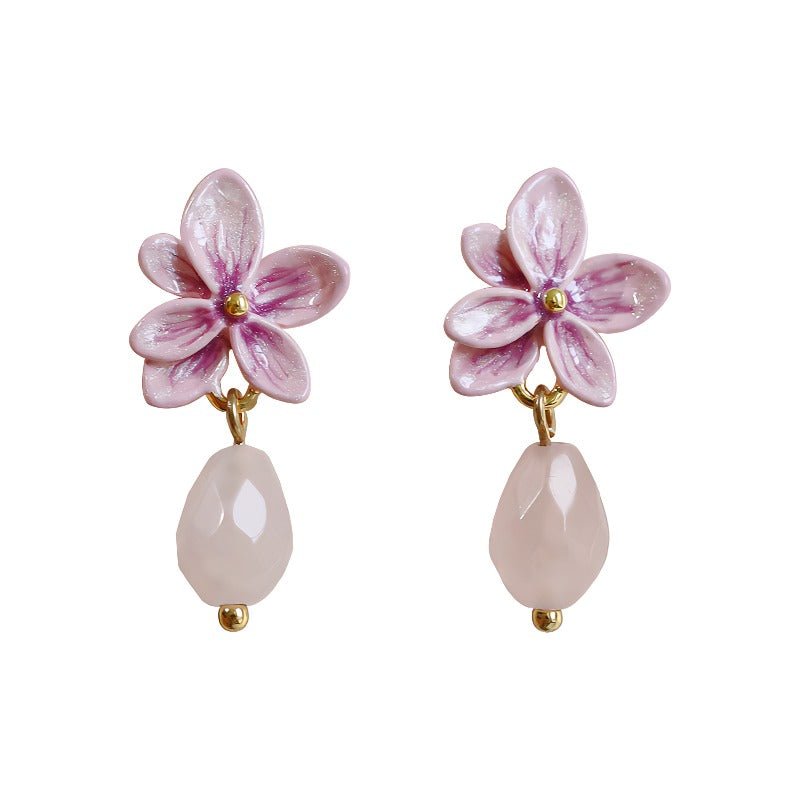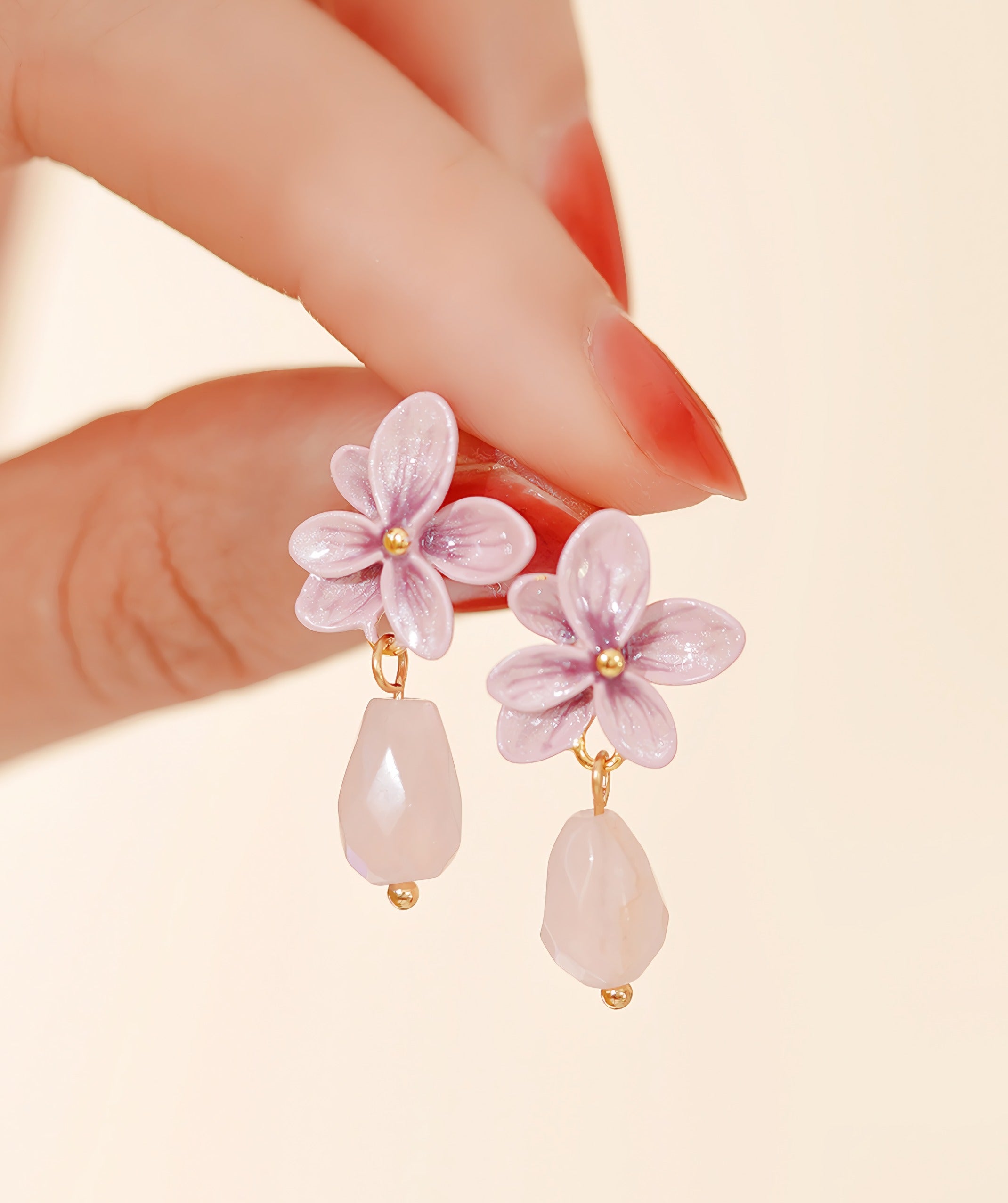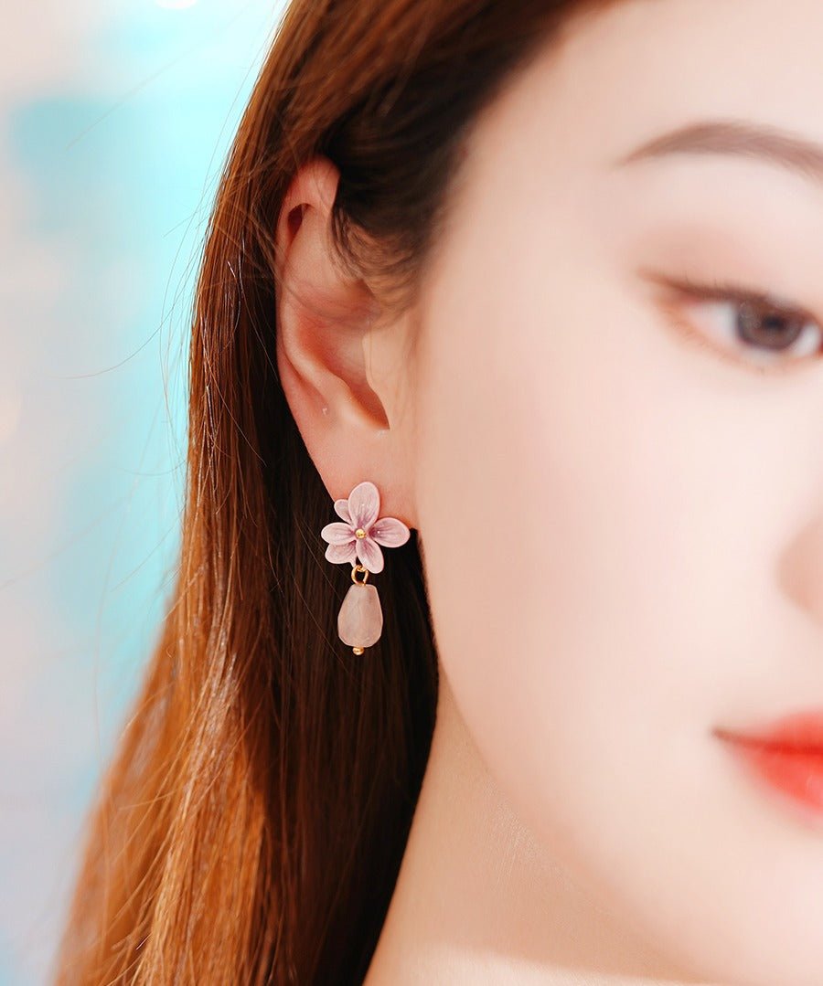 18K Forgyldte Lyserøde Blomst Øreringe med Facetteret Krystal