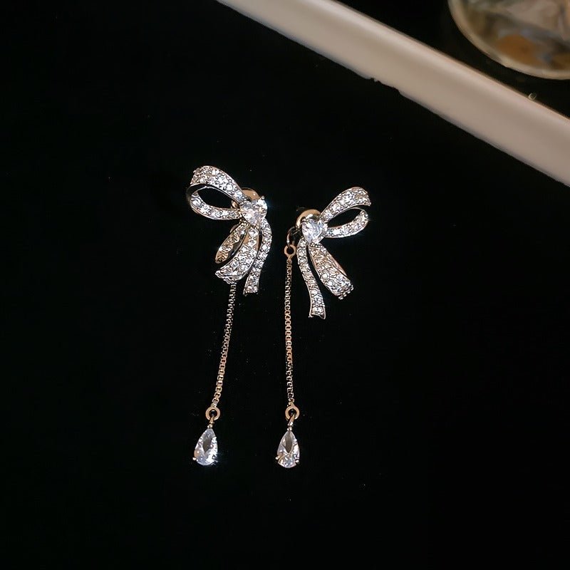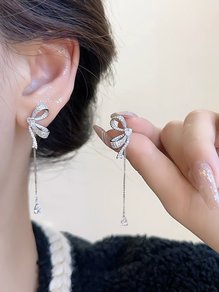 925 Sølvnål Hvidguld Belagt Bue Øreringe med Zirkon – Elegant og Delikat Design