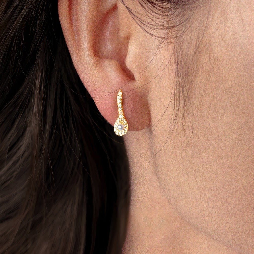 Asymmetriske Perle Øreringe – 18K Forgyldt med Zirkonia & 925 Sølv Nål