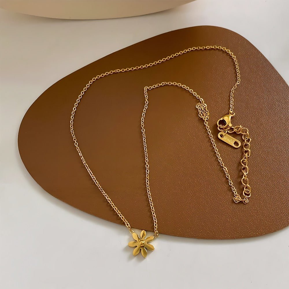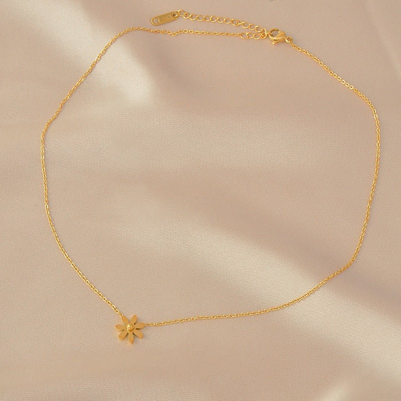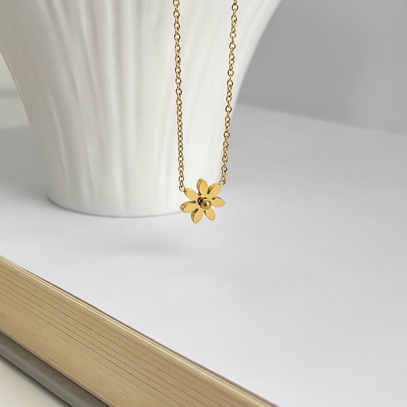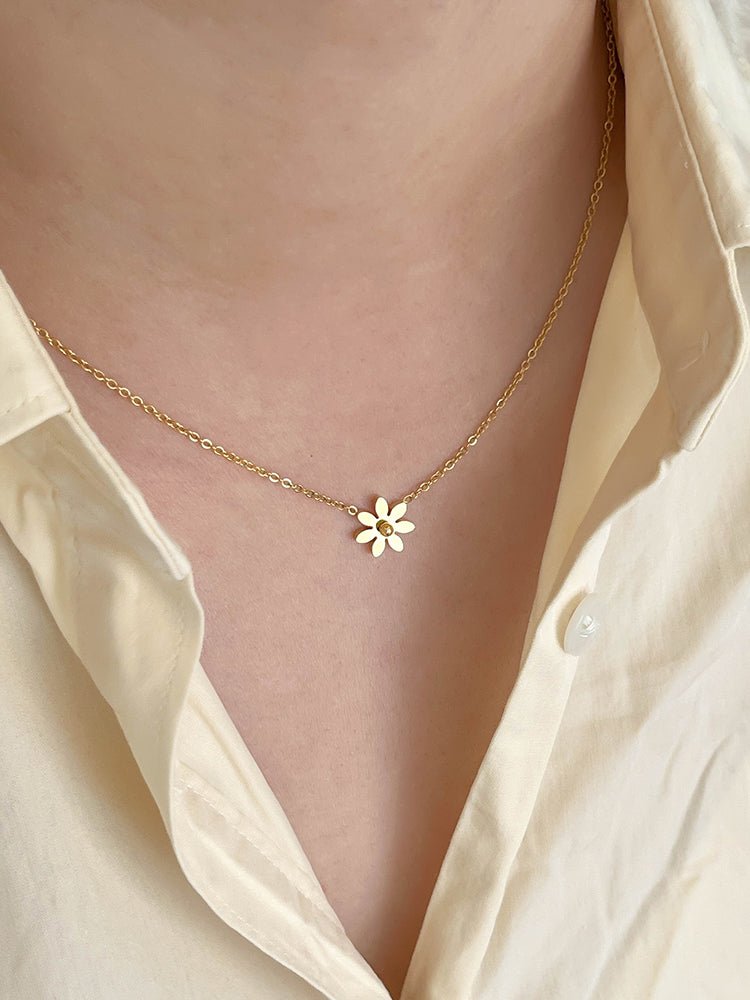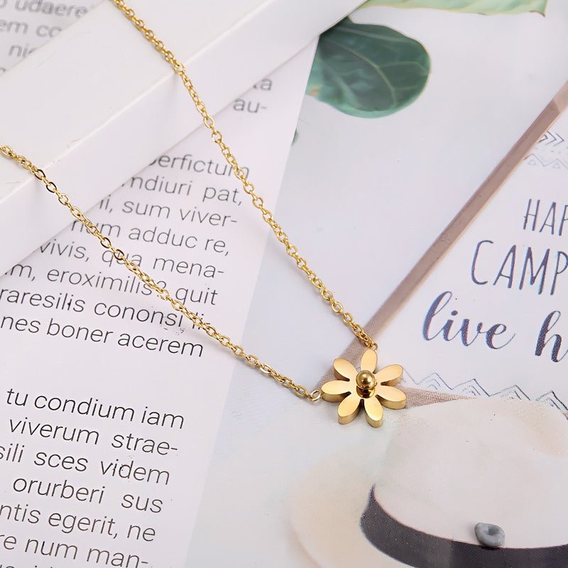14K Förgyllt Titanstål Halsband med Marguerit – Elegant och Tidlös Design