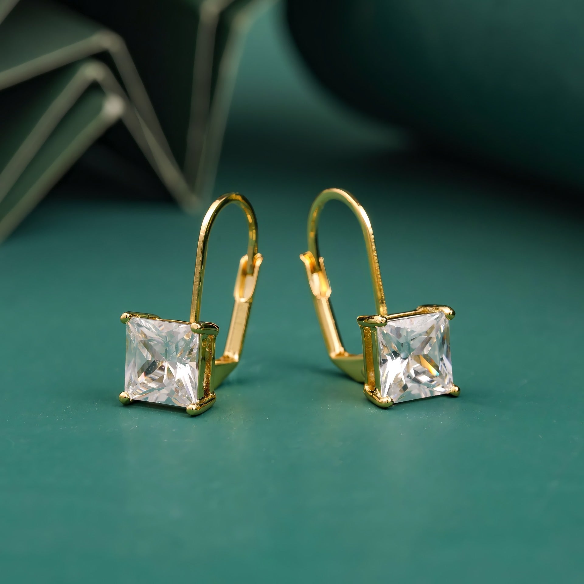 Dessa örhängen förenar enkelhet och lyx i en tidlös design. Utförda i koppar med en exklusiv 14K förgyllning får de en varm gyllene glans som elegant framhäver den klara fyrkantiga zirkonian. Den geometriska formen ger ett modernt och stilrent uttryck, medan stenens glittrande klarhet tillför klassisk femininitet.