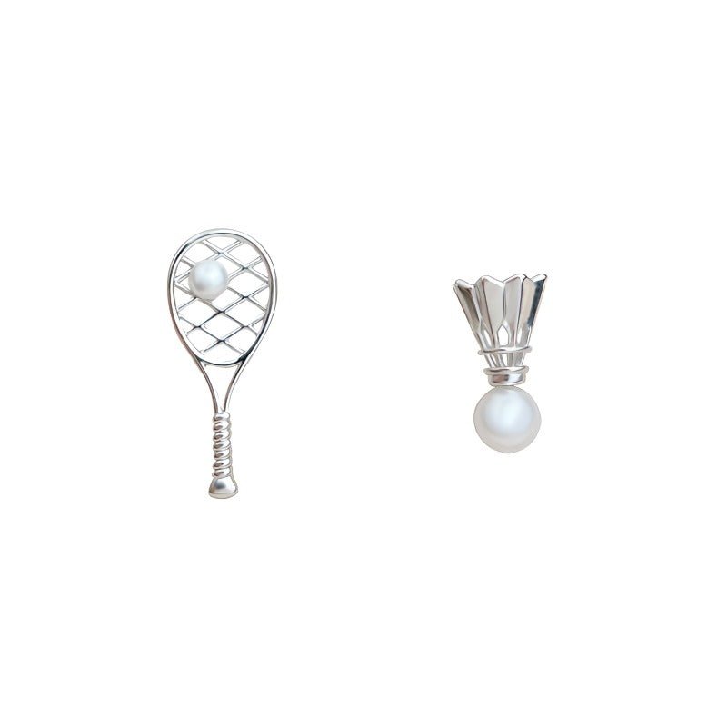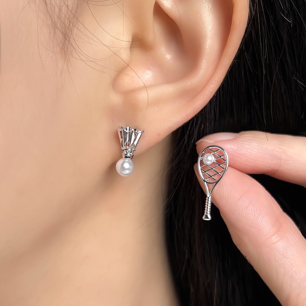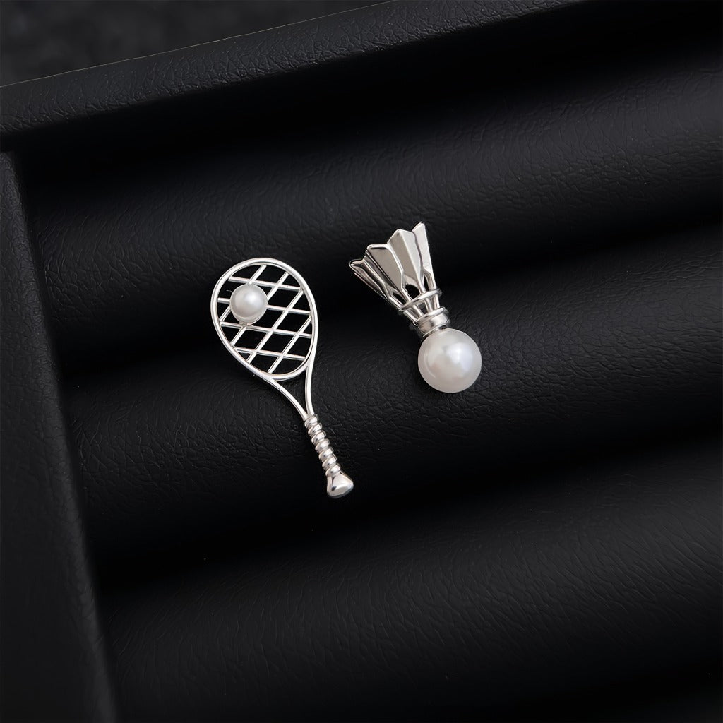 Asymmetriska Tennis- & Badmintonpärlörhängen – 18K Vitguldspläterade & 925 Silverstift