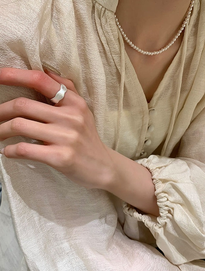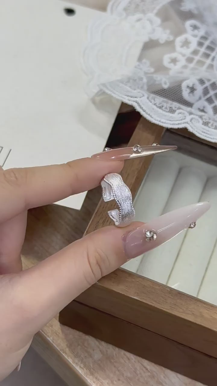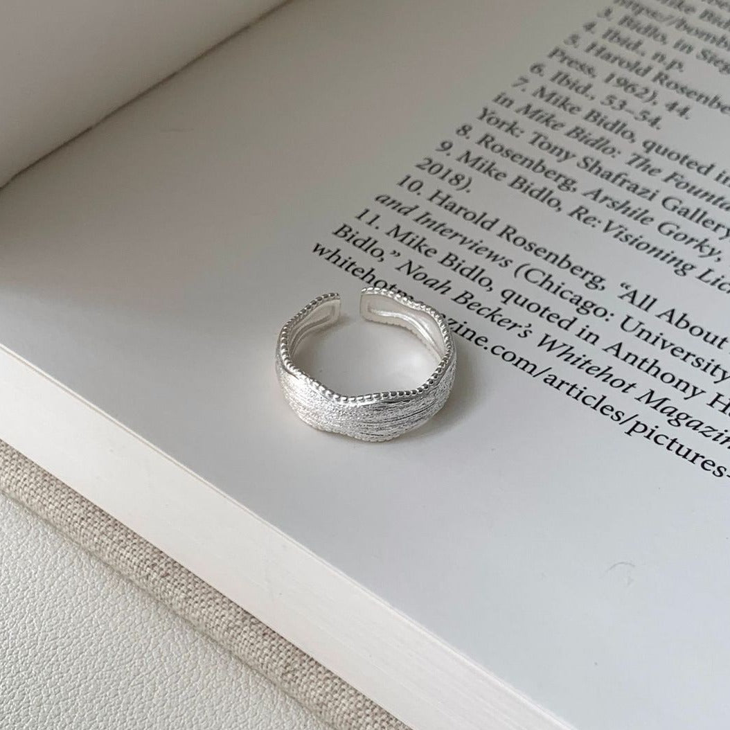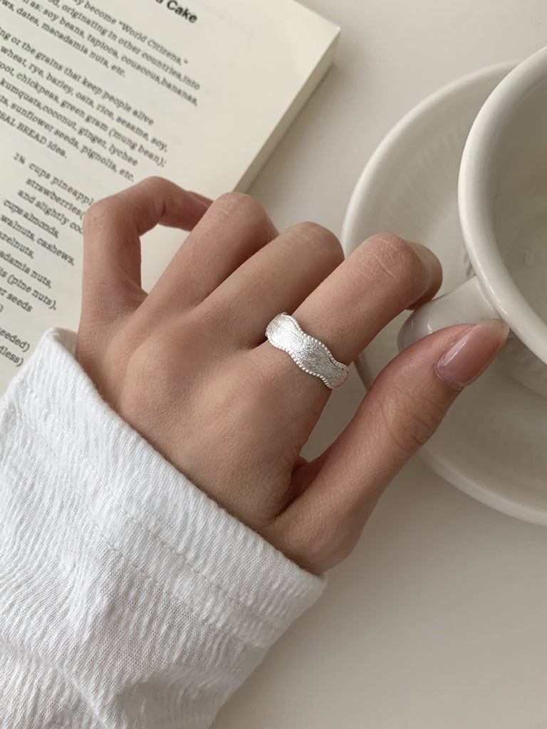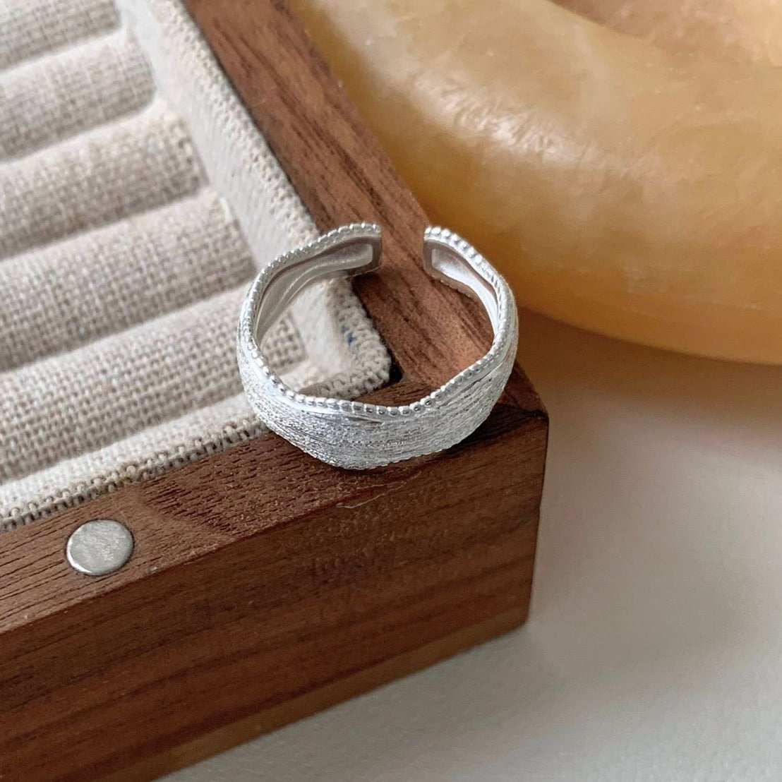 Den unika texturen ger ringen ett sofistikerat uttryck, medan den öppna, justerbara formen gör den bekväm att bära.