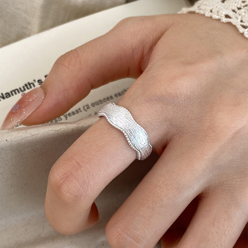 En elegant ring med mjuk vågig form och vacker, borstad (matt) yta som reflekterar ljuset på ett diskret och lyxigt sätt.